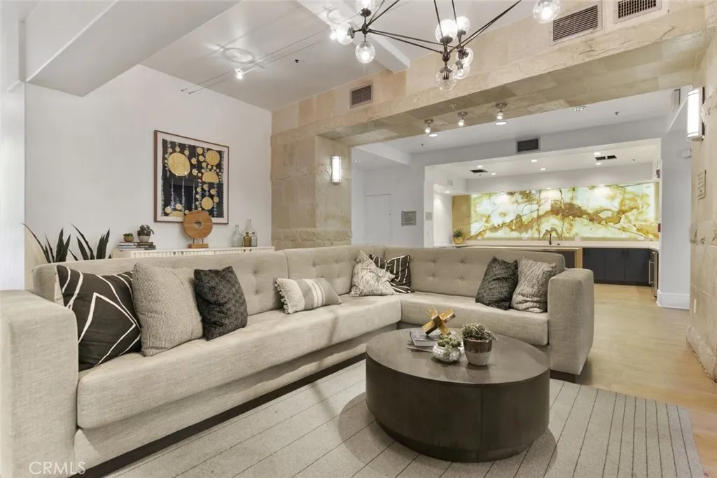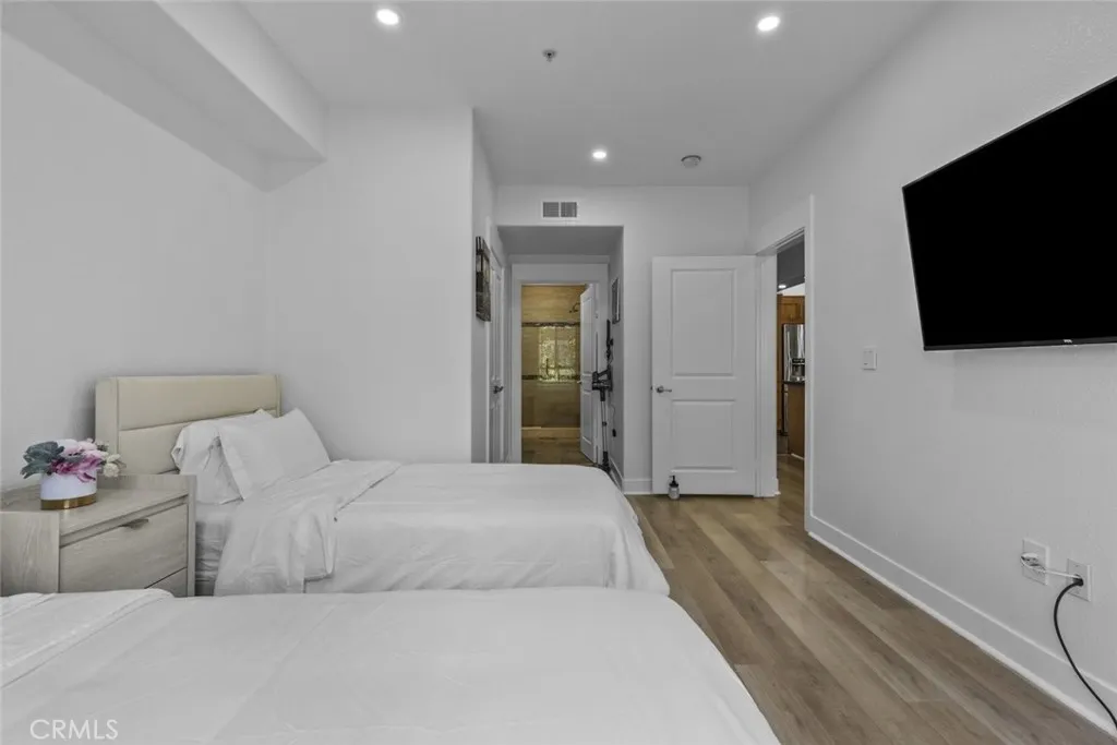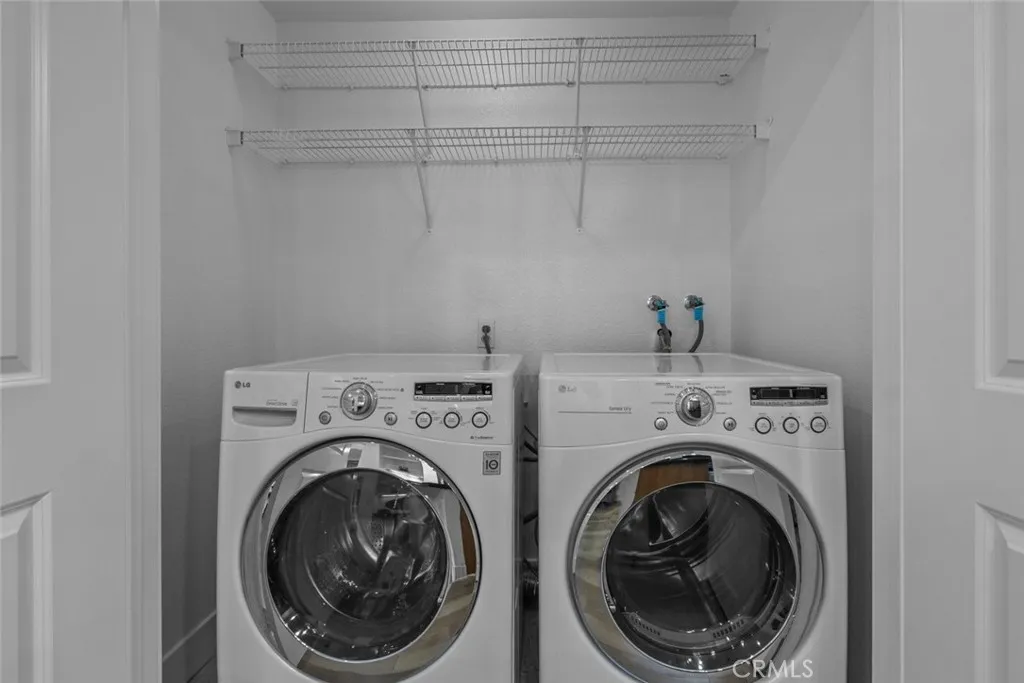 An exquisite and fully furnished condo with in-unit laundry, right across from major shopping centers and a variety of entertainment, residing within the prestigious Madison of Santa Clarita! Completely illuminated by both large windows and recessed lighting throughout, find a 1,090-sqft floorplan detailed with beautiful laminate and stone flooring, tons of built-in storage space, and a fabulous private balcony enjoying scenic views of the courtyard below. The lovely open concept allows for seamless entertaining between the dining and living spaces, and even includes a built-in office nook with shelving and extra lighting. Sparkling stone countertops and well-crafter shaker cabinets adorn this user-friendly kitchen equipped with built-in stainless-steel appliances while also including a comfortable breakfast bar with two pendant lights overhead. Both bedrooms are calming spaces featuring built-in closets with one bedroom including a dual entry bathroom. The large primary bedroom enjoys the exclusive benefit of separate access out to the balcony plus an en-suite bathroom fitted with a corner double sink vanity. The perfect place to call home with this sought-after community offering of a beautiful courtyard, fitness center/gym, lounge areas, recreation space, dining areas, shaded outdoor picnic areas, and the glittering waters of the sun washed pool plus spa provided to all residents. Right in the heart of beautiful Santa Clarita and nearby the Valencia Westfield Mall, a variety of shops, restaurants, entertainment, markets, plus city transportation, and easy access to the 5