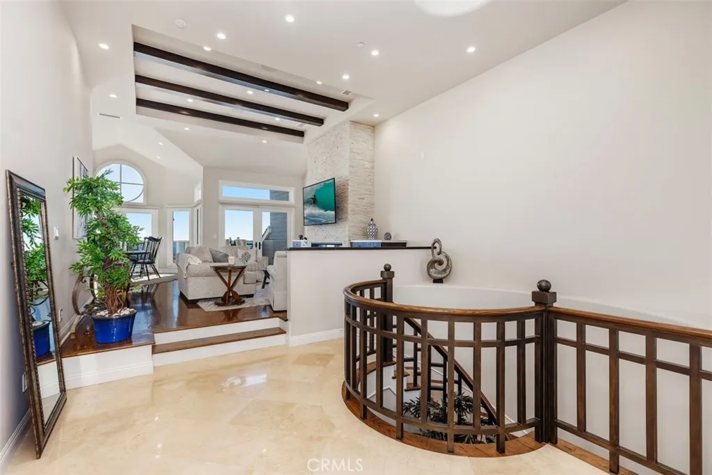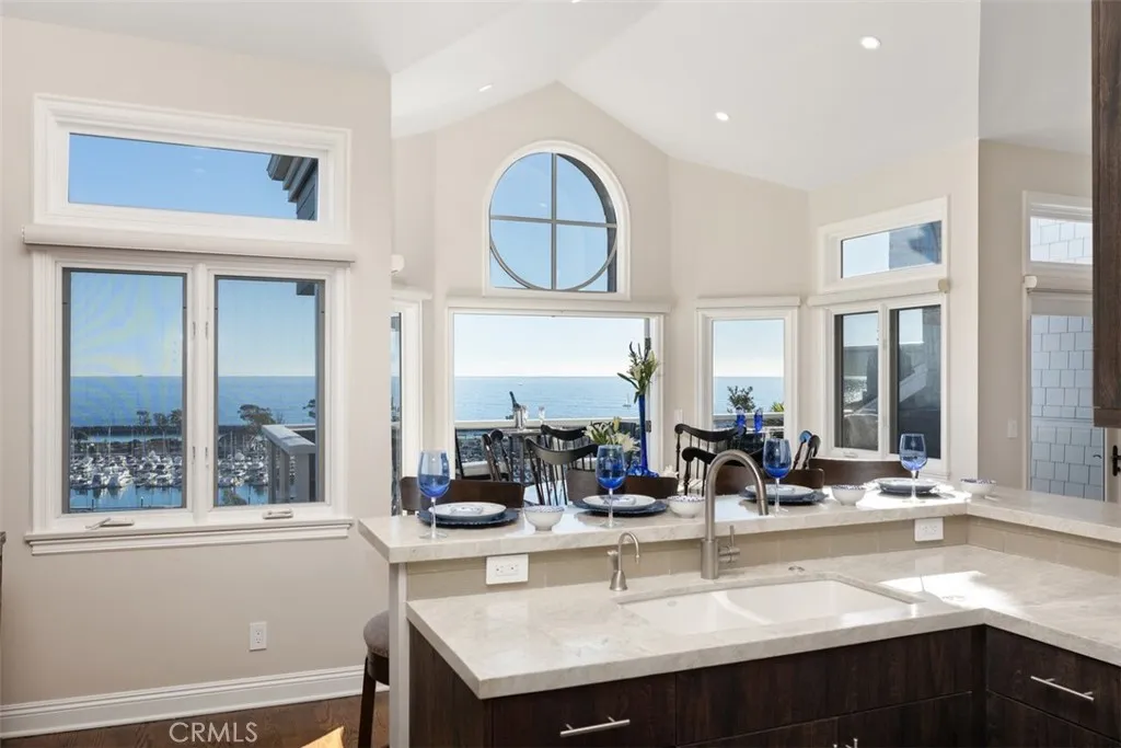 Available March 18th! Set high above Dana Point Harbor, this rare residence offers an unparalleled lifestyle in the exclusive Admiralty community. With breathtaking panoramic views of the ocean, harbor, and whitewater waves, this beautifully upgraded 2-bedroom, 3-bathroom home spans 2,765 square feet, with an optional third sleeping area or den. Upon entry through double doors, the main floor opens to a wall of windows and doors showcasing sweeping ocean vistas, framed by a striking stacked stone fireplace that reaches up to vaulted, beamed ceilings. The open layout connects the living area to a chefs kitchen, equipped with top-tier appliances like a Thermador double oven and cooktop, plus Subzero fridge and freezerideal for culinary pursuits. An oceanfront terrace extends from the kitchen and living area, complete with a firepit for outdoor dining and taking in the cool coastal breeze. The main level also hosts a secondary suite with a walk-in closet and a luxurious bathroom featuring a dual-sink vanity and walk-in shower. Descending to the lower level, you'll find the primary suite, a private sanctuary with its own terrace and sweeping harbor views. This spacious retreat includes a dual-sided fireplace, perfect for enjoying from both the bed and the jacuzzi tub. The ensuite bathroom boasts dual vanities, an oversized shower with a dressing area, a jacuzzi tub, and a generous walk-in closet with a secure safe. A private sauna adds an extra layer of indulgence. The lower level also includes a flexible den area, ideal as a third bedroom for guests or additional lounging spac