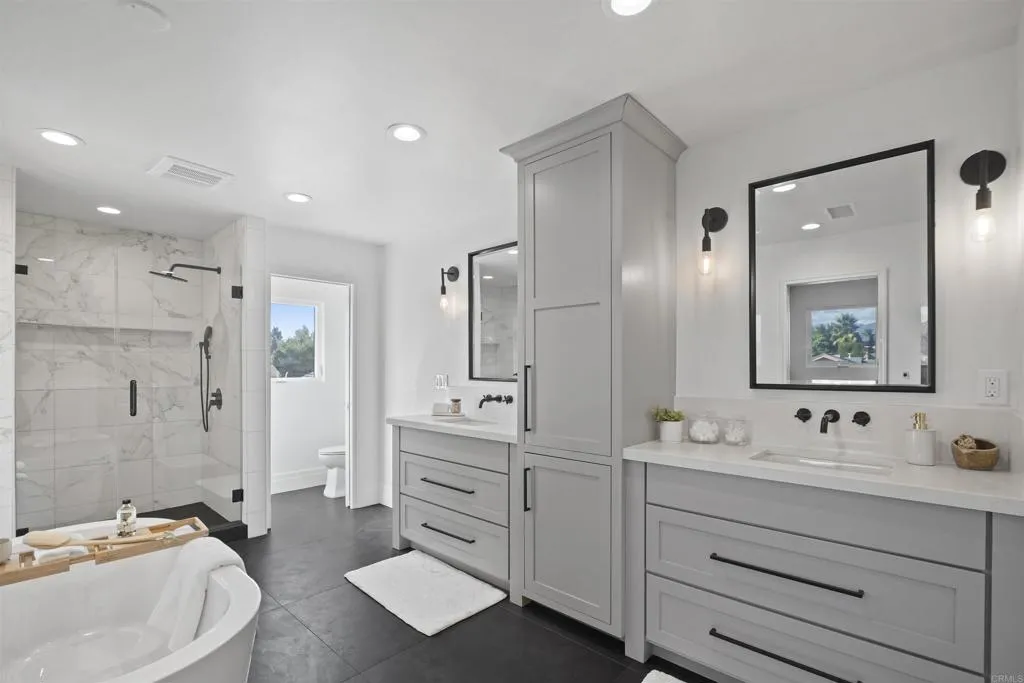 Beautifully remodeled, this Mission Viejo home blends luxurious design with beach-houseinspired aesthetic. Custom shiplap detailing combined with calming shoreline neutrals create a clean, modern coastal feel throughout. An airy, open layout features a chic living room with a sleek fireplace, wide-plank flooring, and coastal paneling. The chefs kitchen showcases a massive island, custom cabinetry, stone and quartz surfaces, pot filler, and open shelving, while the dining area offers a second fireplace and sweeping bifold doors that open to the backyard for seamless indooroutdoor living. Upstairs, the capacious primary suite includes peaceful views, a spa-inspired bathroom with dual vanities, freestanding tub, and oversized shower, plus a spacious custom closet and a bonus room with a private balcony showcasing mountain vistas. Additional bedrooms and redesigned bathrooms offer excellent versatility while a dedicated downstairs office and full bathroom add everyday functionality. The backyard is equally impressive, featuring a sparkling pool, expansive patio, and lush lawn, while fresh landscaping enhances curb appeal and complements the homes clean, modern exterior. Located close to parks, dining, shopping, and recreation, this home delivers both comfort and convenience. Lake Mission Viejo members enjoy access to lakes, beaches, pools, tennis, picnic areas, playground and more - experience the lifestyle firsthand!