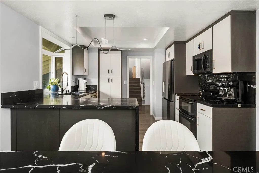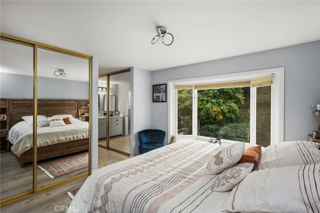 Welcome to this exquisitely remodeled home in the highly sought-after La Paz neighborhood. Nestled on one of the largest parcels in the tract, spanning over 10,000 square feet lot, this property boasts fresh, vibrant landscaping with beautiful trees, colorful flowers, and meticulously maintained greenery, creating a serene and inviting outdoor space. Step inside to discover a home that has been thoughtfully upgraded in 2024 and 2025. The interiors feature gleaming hardwood flooring throughout, fresh paint all through the house, recessed lighting in every room. Modern touches include an updated staircase and railing , along with a beautifully remodeled kitchen with high-end wood cabinets and stunning quartz countertops. The home also boasts new dual-pane windows that enhance energy efficiency, elegant new French doors, and upgraded vanities and faucets in the bathrooms. Additionally, all new lighting fixtures complete the modern, sophisticated look. This spacious home offers three generous bedrooms and three full baths. The main floor includes a welcoming living room, an elegant dining area, and a cozy breakfast nook adjacent to the kitchen. Downstairs, youll find a family room and a full bath, which can easily be converted into a fourth bedroom. This DISTINCTIVE FEATURE offers separation from the main living area, along with independent access to both backyard and the street, essentially functioning like an ADU and providing both privacy and convenience. Upstairs, the master suite overlooks the lush backyard, while the additional bedrooms boast stunning mountain views. Addi