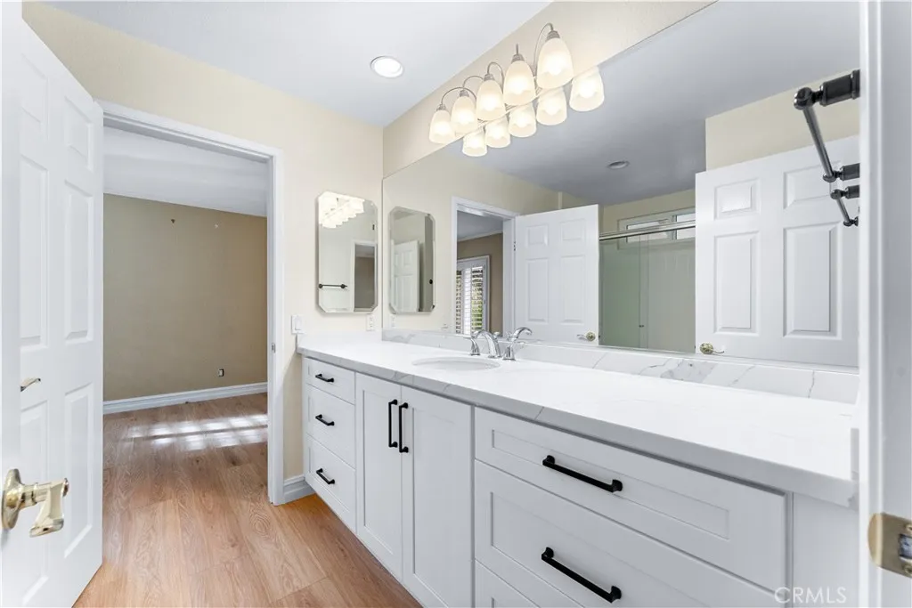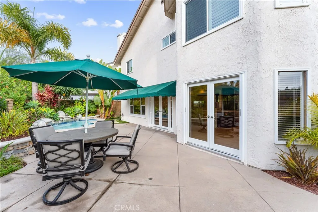 This beautifully remodeled 5-bedroom, 3.5-bathroom home is tucked away in a peaceful cul-de-sac. It features a 3-car garage with epoxy floors and overhead storage, a large primary suite with a fireplace, walk-in closet, and a luxurious en suite bathroom with a soaking tub and walk-in shower. A hot water recirculation system ensures instant hot water throughout the home for added convenience. Upgrades include elegant marble and luxury vinyl plank flooring, dual-pane windows, and crown molding throughout. The landscaped backyard boasts a private spa, perfect for relaxing. Conveniently located near shopping, dining, and top-rated schools, this home is ready for you to move in.