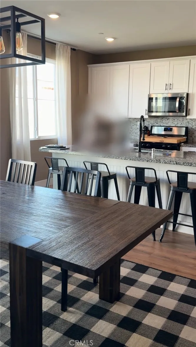 Four-bedroom, three-bath home in one of Moreno Valleys newest, well-kept developments. Built just five years ago and shows like a model. Beautifully landscaped front and back yards, two-car garage with epoxy flooring, and a bright open great-room layout with 9-foot ceilings, fresh paint, large windows (professional shades are off but come with it), and sliding glass door to the backyard. Spacious kitchen with island, pantry, matching backsplash, and room for a full dining table, all open to the living area. One bedroom and full bath downstairs, with the primary suite upstairs featuring a walk-in closet, plus two additional bedrooms with large closets and a convenient upstairs laundry room. Located near a gated community park and the San Juan Bautista De Anza walking trail just steps away, with picnic areas, BBQs, play equipment, and sport court. Close to schools, shopping, freeway access, and Moreno Valley College. Clean, well-maintained, and move-in ready.