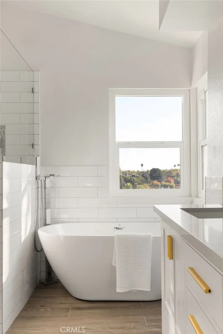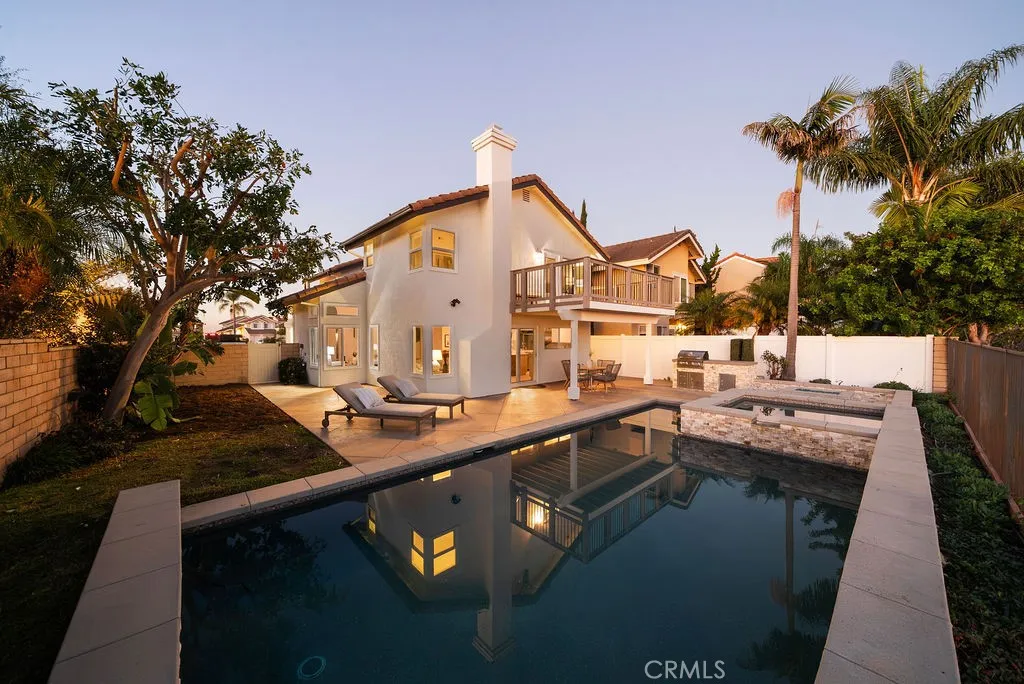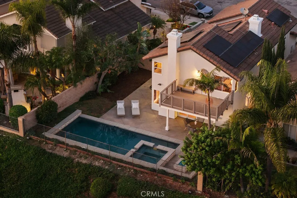 Welcome to this elevated coastal 4 bedroom salt water pool home in Laguna Niguelwhere stunning views, thoughtful upgrades, and resort-style living come together in perfect harmony. This beautifully updated two-story home offers an open and airy floor plan enhanced by gorgeous vaulted ceilings, a grand double-height entry, and seamless indoor-outdoor flow. The main level features multiple living spaces including a spacious living room, family room, dedicated dining room, and a convenient powder bathroom. The home is complete with a separate interior laundry roomwasher and dryer included. At the heart of the home sits the newly refreshed kitchen, showcasing an island perfect for gathering, soft-close cabinetry and drawers, quartz counters, chic champagne brass hardware, and views that invite natural light throughout. Upgraded flooring flows through the entire home, and new light fixtures in every bathroom elevate the fresh, modern aesthetic. Upstairs, the expansive primary suite feels like a private getaway with its own deck offering peek-a-boo ocean views and sweeping neighborhood vistas. The spa-inspired primary bathroom includes dual sinks, a separate soaking tub, a walk-in shower, and two generous walk-in closets. Each additional bedroom features built-in desks, making them perfect for study, work, or creative space. The upstairs shared hall bathroom also includes dual sinks, upgraded hardware, and a spacious walk-in shower. Step outside to your private backyard oasis featuring a sparkling pool, spa, built in bbq, and gas fire pit ideal for entertaining or unwinding while