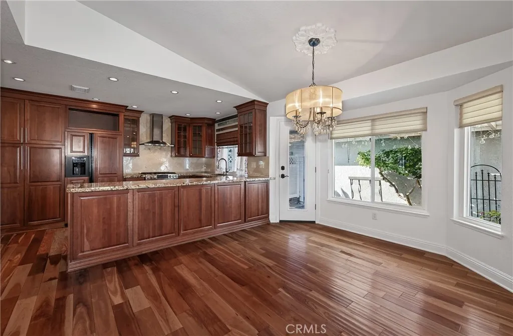 This beautifully updated 2-bedroom, 2-bathroom home in Brittany Place combines modern upgrades with timeless style. The spacious living room features a cozy linear gas fireplace with reflective glass, recessed lighting, and in-wall wiring for a mounted TV and speakers. The kitchen features granite countertops, Kraft Maid cabinets with rollout drawers and a Lazy Susan, a GE Caf counter-depth refrigerator, stove, and dishwasher, a stainless vent system, tumbled marble flooring with accent pieces, and a Sharp microwave drawer. Soft-close hardware, a large single sink with in-counter soap dispenser, and a marble backsplash complete this stylish space. Bathrooms are upgraded with tumbled marble floors, custom wall tile, modern sinks, bronze-rubbed fixtures, updated cabinets with granite countertops, and updated commodes. The master bath has a custom glass shower with dual shower heads, while the guest bath includes a deep soaking tub. The bedrooms feature upgraded closets with shelving and rods, heavy-duty mirrored doors, custom blackout blinds, and TV pre-wiring in the guest bedroom. Throughout the home, enjoy engineered maple flooring, crown moldings, solid-core doors, custom vent covers, updated electrical outlets and switches, dimmable lighting, and dual-pane windows. Step outside to a private concreted patio with a custom planter, drip irrigation, aluminum patio cover, mood lighting, and beautifully landscaped succulents. The attached garage offers storage cabinets and an exterior keypad for convenience. Brittany Place offers a community pool and spa and is just minutes fro