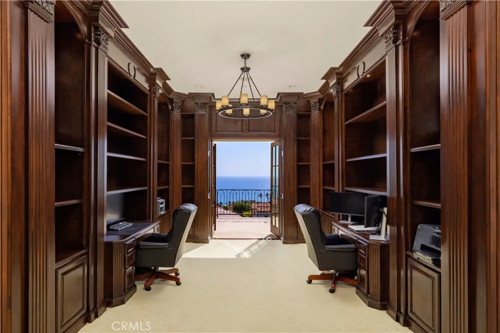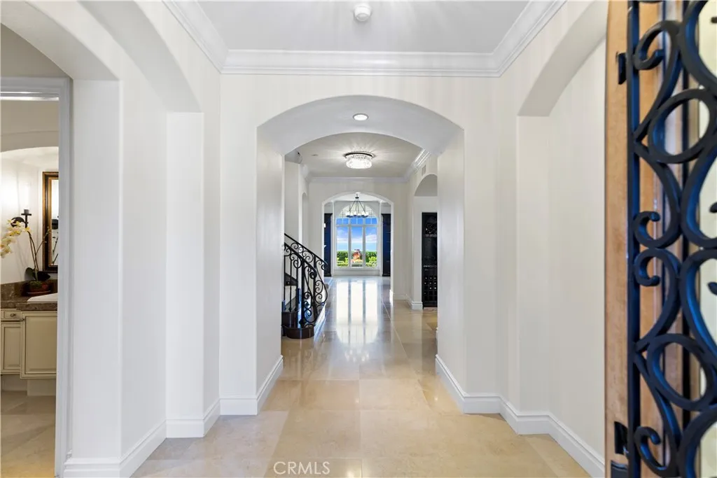 Indulge in luxurious coastal living with this stunning 4800 sq. ft. property in the coveted guard-gated Crystal Cove community. Enjoy sweeping 180 degrees ocean views stretching from Palos Verdes to Catalina Island to Laguna Beach, complemented by high vaulted ceilings throughout the house and an enchanting courtyard. Inside find a large open kitchen featuring Sub Zero and Viking Professional appliances with dual ovens and dual dishwashers. The large primary suite offers a sumptuous bathroom, sitting area, and unparalleled ocean views, while another en-suite bedroom commands an exquisite courtyard view. A separate guest casita with a full bathroom provides additional accommodations. All three downstairs bedrooms have separate entries, making for a versatile living space. Upstairs, there are two additional bedrooms, a loft and a large office with custom built cabinets, cathedral ceilings, and expansive ocean views make the ultimate work-from-home oasis. Step outside to the large balcony and soak in the tranquil ambiance while working or relaxing in comfort. Experience resort-style living with access to world-class amenities, including a clubhouse with a pool, spa, gym, tennis courts, basketball court, parks, and miles of walking and biking trails. With refreshing sea breezes and forever ocean views, this property epitomizes luxury living in Newport Coast's most coveted community.