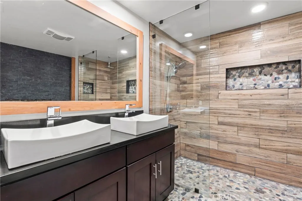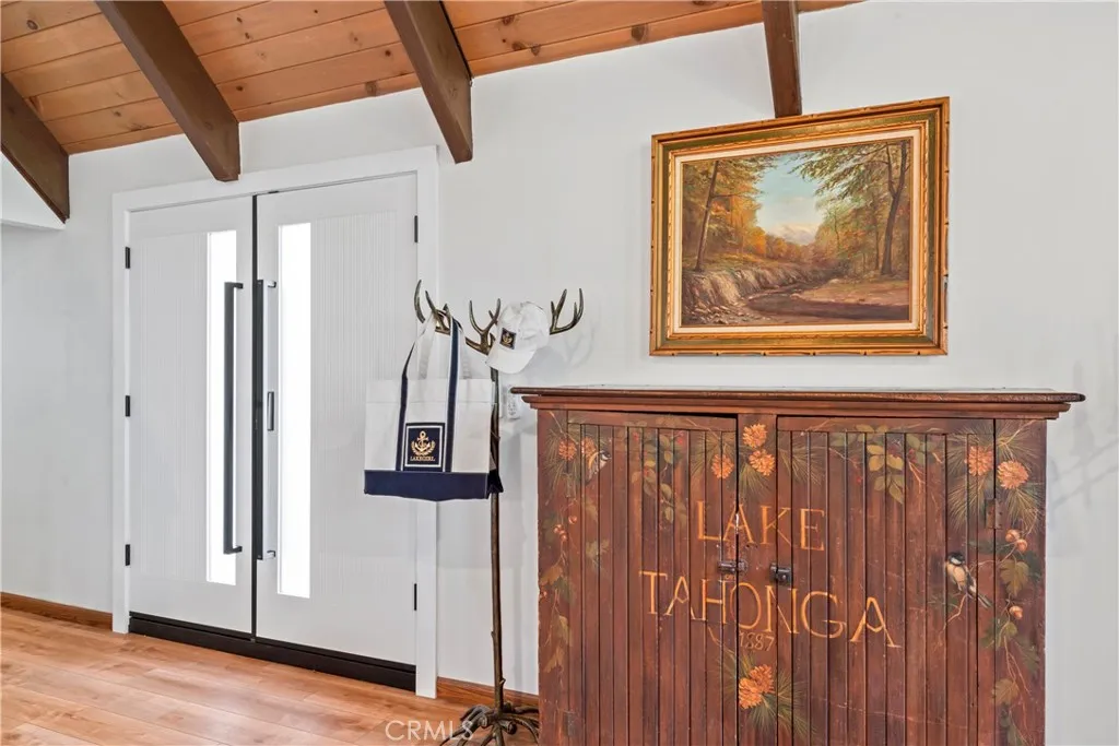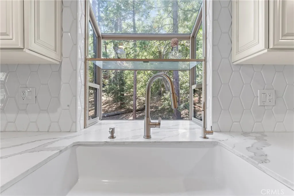 Phenomenal Prow Style home located directly across from the forest and trails, with easy access to the golf course just down the street. This property also includes Lake Rights, allowing full use of beautiful Lake Arrowhead. Over $300,000 in upgrades, including a recently remodeled kitchen with high-end professional-style appliances, slab quartz countertops, and a garden bay window overlooking mature evergreens and oaks on your own land. The home features 4 bedrooms, 3 bathrooms, an office, and a den/family room with a second fireplaceideal for gatherings or quiet relaxation. The main-level Great Room highlights natural wood open-beamed ceilings and a classic retro rock fireplace that adds warmth and character. Additional updates include remodeled bathrooms, new interior and exterior paint, newer lower patio/deck, fenced yard, upgraded flooring, newer forced air system, "Leaf Guard Style" rain gutters and system improvements. Both the new Flagship whole house water filtration system and an additional Reverse Osmosis system at the sink ensure the best of the best for your water supply. Both guys and gals can relax in the "She-Shed" while the guys have their own storage shed, too. Located in a peaceful, forested setting with nearby recreation and golf access, this home offers both comfort and convenience in one of Lake Arrowheads most desirable areas.