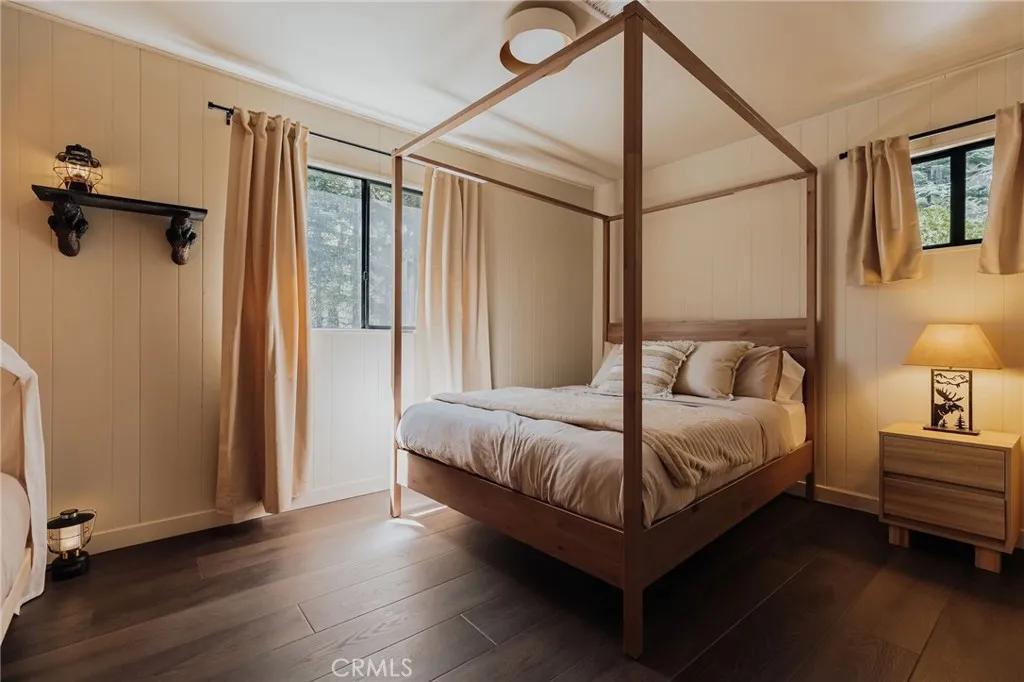 WOW, WOW, WOW!!! Wait Until You See this Incredible Mountain Home Tucked Away Amongst the Towering Pines & Oaks With the Tranquil Sounds of a STREAM RUNNING Right Alongside of the Property! And It's ALL NEWLY REMODELED & Comes FULLY FURNISHED Just as You See it!! You Will Love this Amazing Home with Level Entry Access, a 2-Car Garage and Yes... those Soaring High Tongue-And-Groove Ceilings and FLOOR-TO-CEILING WINDOWS that Everyone Loves! The Quality and Modern Touches Feel So Stylish & Inviting! Cozy up to the Custom Stone Fireplace on a Snowy Day and Enjoy the Oversized Deck Sitting in the Trees on Warmer Days! The Primary Suite is Conveniently Located on the Main Floor with a Gorgeous Modern En Suite Bathroom with Dual Sinks, Oversized Shower and a Relaxing Sitting Area. Upstairs is a Fun Loft Area Overlooking the Living Area with Magical Views of the Nature Outside, Along with Two More Generously-Sized Bedrooms and a Bathroom. Downstairs is a Super Comfy Den with Fireplace, a Game Room Area and Another Amazing Full-Size Deck to Enjoy the Peaceful Sound of the Stream Just Outside. There is also a 4th Bedroom on this Level with a SECRET DOOR that Opens up to a Really Cool Theatre Room with Kids Play Areas! The Setting Here is Very Special with The Gently Sloped Lot that Has So Much Potential to Make an Amazing Fenced Backyard Right By the Water Feature that Runs Street-to-Street! Located in the Highly Desired Summit Area, Less than a 10 Minute Drive to the Lake's Edge! Also Just a Quick Drive to the Lake Arrowhead Village, Skypark and the Slopes too! And Yes, It Absolutel