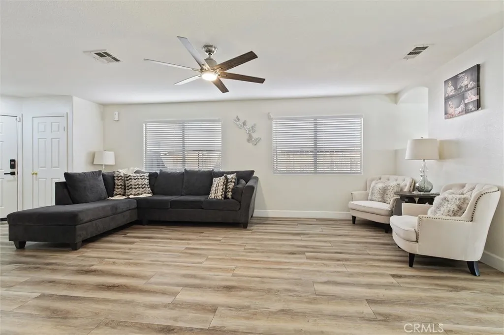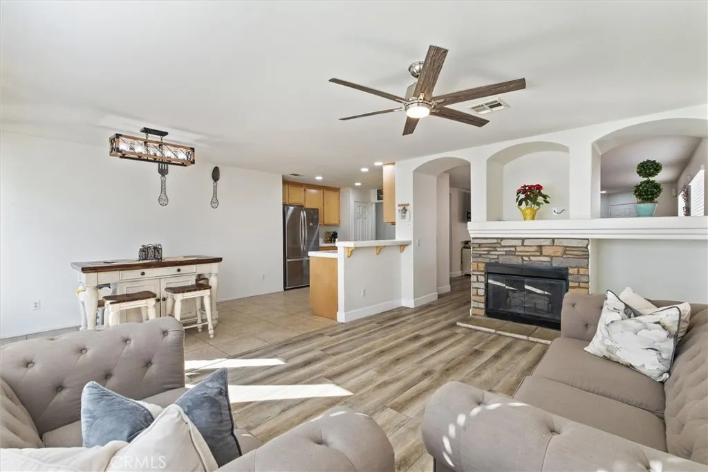 Beautiful single-story home located on a quiet cul-de-sac in the desirable Moreno Valley Ranch community. This 4-bedroom, 2 bath residence offers 1,772 sq. ft. of open-concept living space featuring a spacious livng and dining area with a cozy fireplace. The open kitchen is ideal fo entertaning and everyday livng. The primary bedroom includes a wal-in closet and a private en-suite bathroom. additional highlights include an indoor laundry room with direct access to the attached two-car garage, abundant natural light throughout, and a well-maintained yard with fruit trees. Conveniently loated near shopping, dining, parks, school, Moreno Valley College, hospitals, and major freeways. The Moreno Valley Ranch HOA provides access to a gym, gated park with BBQ areas basketball courts, a lake, swimming pool, open grass fields, and a playground.