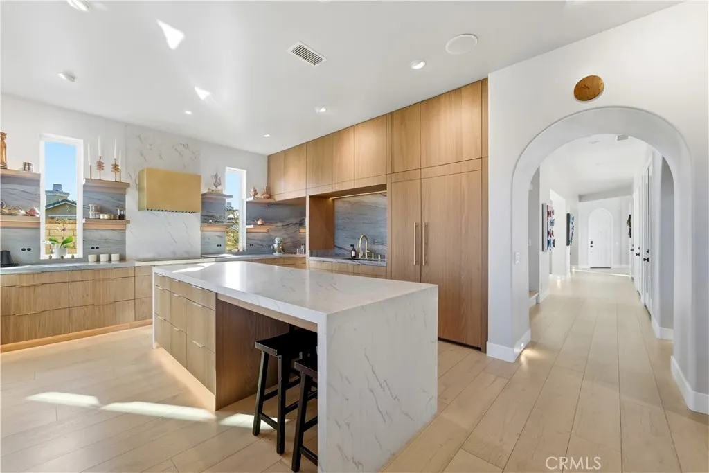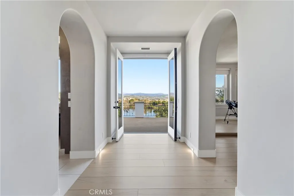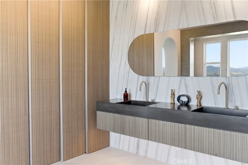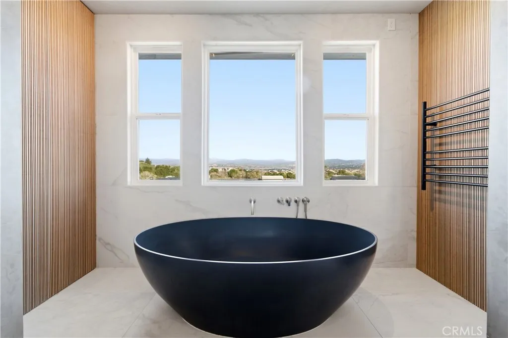 Welcome to one of the most luxurious residences in Valencias prestigious Westridge Estatesa rare, fully reimagined estate offering unparalleled privacy and sweeping 180-degree views of the golf course, lake, and surrounding mountains. This exceptional 5-bedroom, 5.5-bathroom home has undergone a meticulous head-to-toe renovation completed within the past two years, with no expense spared. Every bedroom features its own private en-suite bathroom. The home was architecturally redesigned by Jan Chiatas, a highly regarded architect known for refined, modern luxury and functional elegance. Expansive sliding glass windows throughout flood the interior with natural light and create seamless indoor-outdoor living. The renovation encompassed structural, mechanical, and aesthetic upgrades, delivering a truly turnkey residence. Interior finishes include quartzite kitchen countertops, marble fireplaces and master bathroom walls, a statement sandstone accent wall in the powder bathroom, handcrafted Roman clay interior wall finishes, and wide-plank hardwood flooring throughout. Designer lighting, custom millwork, and precision detailing reflect the level of craftsmanship expected in premier luxury homes. The chefs kitchen is outfitted with Wolf and Sub-Zero appliances, bespoke high-end cabinetry, and a thoughtfully designed layout ideal for both entertaining and daily living. A finished garage with additional Sub-Zero refrigeration further underscores the homes elevated functionality. Behind the walls, the renovation extended to new full-house copper plumbing, integrated smart home autom