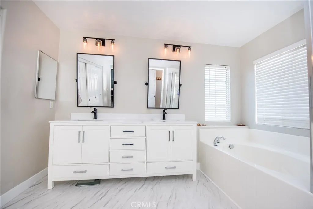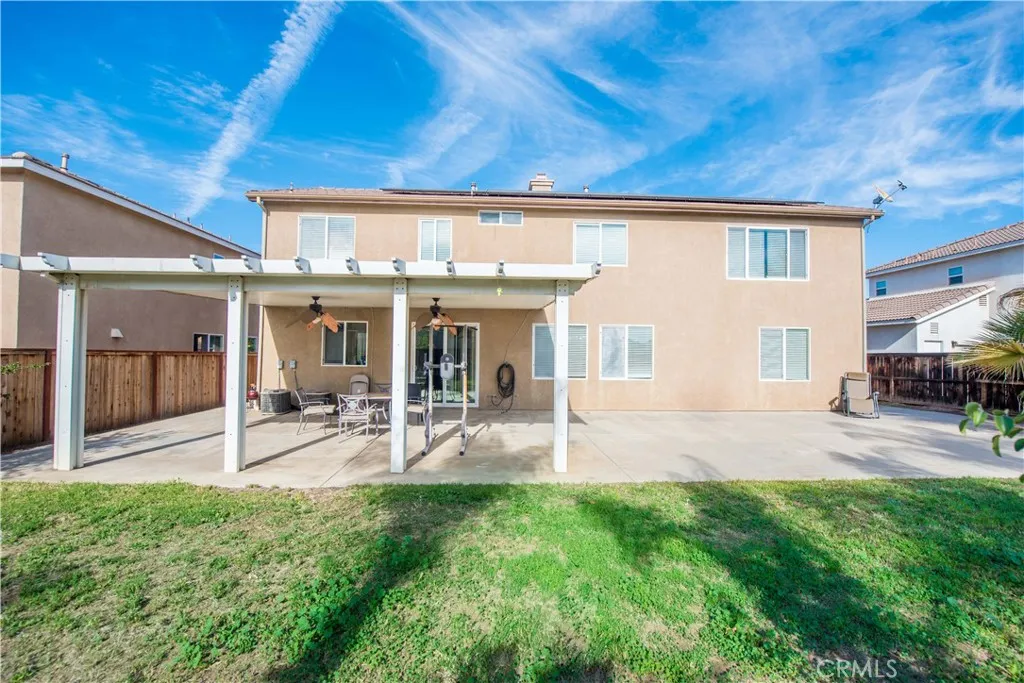Welcome to 26599 Opal Street, a spacious and well-appointed 4-bedroom, 3-bath home with one bedroom and full bathroom downstairs. This home features an open floor plan ideal for comfortable living and entertaining, with a large kitchen that opens seamlessly to the living area, creating a bright and inviting space. A versatile loft provides the option for a 5th bedroom, home office, or additional living space. The primary suite offers a beautifully remodeled master bathroom and an expansive walk-in closet. Luxury wood-look laminate vinyl tile flooring enhances the main living areas, combining style and durability. Additional highlights include a three-car garage and a large backyard complete with an Alumawood patio cover, perfect for outdoor entertaining and year-round enjoyment. Situated near parks, schools, shopping, dining, and major commuter routes, this home offers both convenience and a strong sense of community, making it an excellent place to call home. It is nestled in the Mohogany Fields community, close to Kaiser Permanente Medical Center, Riverside Health University, Moreno Valley College and the Stoneridge Shopping Center. SOLAR LEASE is $186 monthly with Freedom/Mosaic Solar