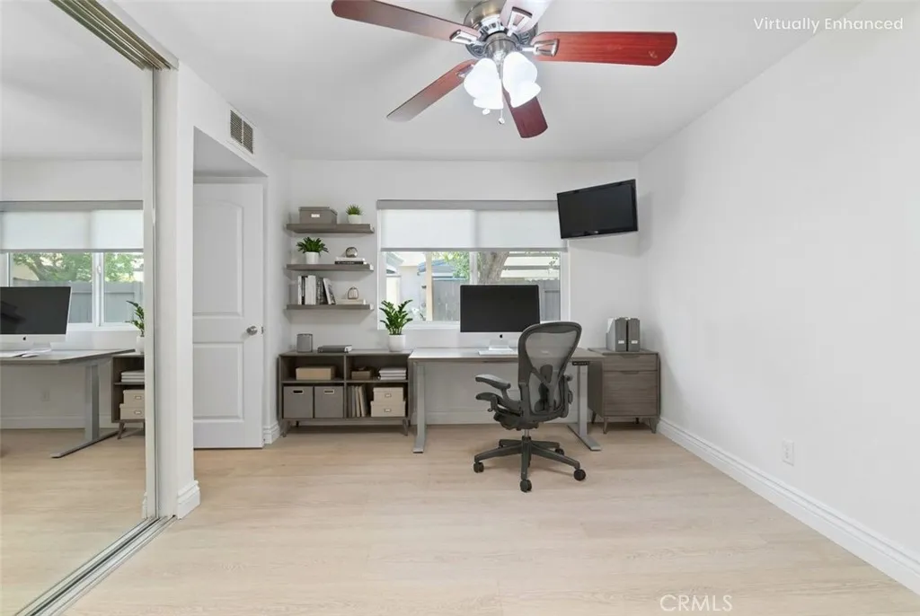 PRICE IMPROVEMENT! Motivated Seller! Welcome to Quail Creek! This serene, ground-level 2BD/2BA end-unit offers 1,124 sq ft of peaceful living with no stairs and soothing sounds of the creek. Upgrades include a brand-new furnace (2024), A/C (2019), new laminate floors, fresh paint though out, Upgraded bath vanities, kitchen lighting, faucet, and a fully renovated master bath with new fixtures and toilet. The open-concept living room has a fireplace and sliding doors to a private patio. Spacious primary suite with patio access, en-suite bath, and tranquil views. Resort-style amenities: 2 pools, spas, tennis courts, Onsite EV Charging, and lush landscaping. HOA Includes Water, Gas, Trash, & Exterior maintenance. Close to freeways, Irvine Spectrum, and beaches. Dont miss this rare find!