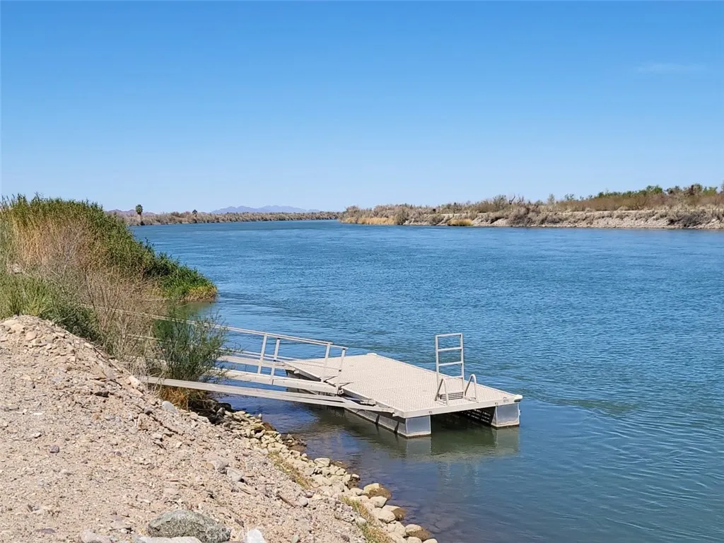 Rare opportunity to own a scenic .77-acre waterfront homesite directly on the Colorado River. Located approximately a quarter mile south of Walters Camp in the gated community of Rio Del Sol, this exceptional property is just about a three-hour drive from San Diego and offers breathtaking, unobstructed views up and down the river. Ideally positioned adjacent to the communitys private boat launch, the lot is already improved and ready for future development. Existing features include a permitted private boat dock, chain-link fencing on both sides, and a custom 16-foot iron vehicle gate with a matching 3-foot pedestrian gate, both lockable for added security. A new 1,500-gallon septic system with leach lines is already installed and designed to accommodate a five-bedroom home. Water, electricity, and telephone lines are stubbed to the property for convenient future connection, with reliable water service provided by Riverfront Mutual Water Company. This is an incredible setting to build your dream riverfront home or private vacation retreat, surrounded by endless opportunities for boating, fishing, hiking, hunting, and off-roading.