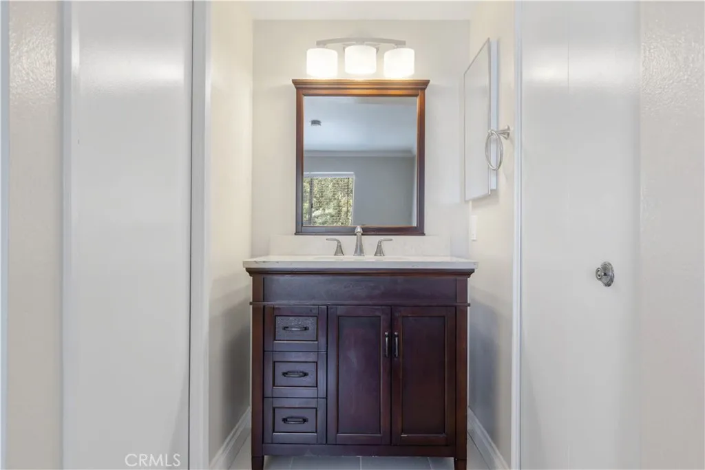 Beautifully upgraded 3 bedroom lower level SINGLE STORY unit in the highly sought after American Beauty Village! This lovely light and bright home has been tastefully upgraded with wood like floors throughout the living areas and bedrooms, gorgeous tile flooring in kitchen, baths and laundry closet and boasts 3 bedrooms that are very spacious and private! The kitchen overlooks the dining area, family room with fireplace and balcony, complete with breathtaking lush mountain views and has been upgraded with gorgeous quartz counter tops, glass tile backsplash, stainless steel appliances and timeless white cabinets. The spacious primary bedroom features 2 closets and an upgraded ensuite with a quartz vanity and walk in shower. The secondary bedrooms share the hall bath complete with an upgraded quartz vanity, shower/tub combo and a generous linen closet. Included is a newer stackable washer and dryer, water heater and HVAC condenser. This unit has an oversized 2 car tandem garage with plenty of room for two cars and excess storage, plus lots of street and guest parking! Just a short drive to the 14 freeway, Costco, restaurants, and shopping. Truly an ideal location within the tract and within the city!