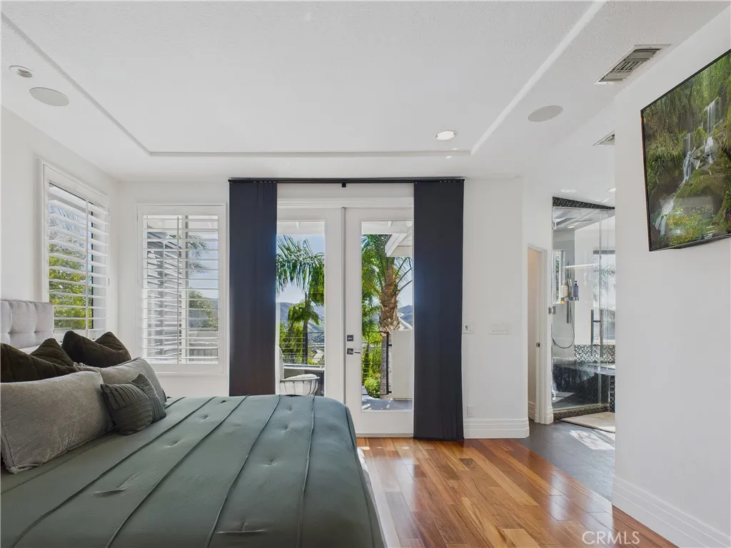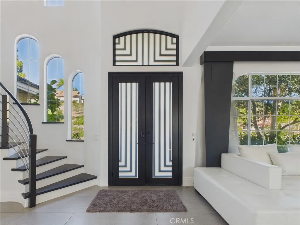 Take in the view at this contemporary estate perched high above Yorba Linda. As you arrive, you will be drawn-in by the sleek, professionally designed hardscaping and landscaping, which lend the home a modern, upscale appearance. As you walk through the updated iron/glass front door, you will find the expansive foyer, which opens to the formal living/dining rooms, and leads the way to the kitchen and family room. The family room is packed with modern features, including a hide-away TV/Entertainment center, a stainless and glass fireplace, and a wet-bar with an oversized Sub-Zero wine refrigerator. As you continue past the family room, you will find the large chefs kitchen, which includes a Wolf/Sub Zero appliance suite with a large built-in refrigerator, 6-burner stove, separate built-in convection oven, built-in microwave and coffee/beverage bar area complete with a beverage refrigerator. The newly installed quarts countertops offer a clean, classic look to the space. Directly adjacent to the family room, you will find the laundry room, access to the 4-car garage, a half-bathroom, and the main-floor bedroom which features an en-suite full bathroom with walk-in shower. The sweeping granite clad staircase takes you up to the second level where you will find the primary suite, 3 additional bedrooms and the upstairs hallway bathroom. The expansive Primary suite features a sitting area with fireplace, a balcony with a 180 degree view and large modern primary bathroom with a walk-in shower, soaking tub, vanity area and walk in closet. The office/bedroom features custom built-in
