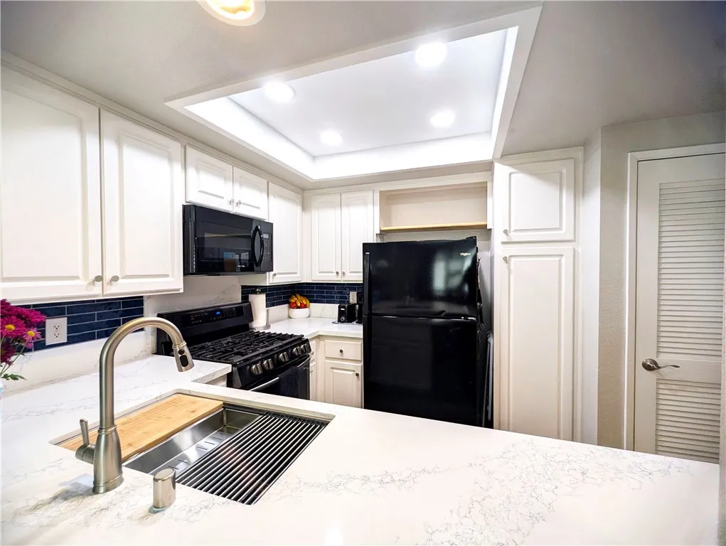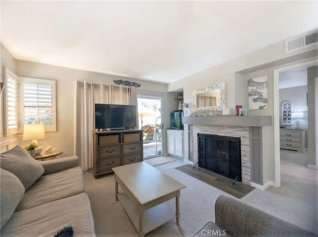 Just steps from the tranquility of Rancho Santa Margarita Lake, this beautiful residence could be yours in the coveted lakefront community of Brisa Del Lago I. The spacious single-level home, with no interior or entry steps, welcomes you with luxury vinyl plank flooring, and lots of natural light. The living room is equipped with a stylish stone-surround fireplace, perfect for cozy evenings, while sliding doors open to a large, private, west-facing patio framed by graceful palm trees, a serene space for watching the sunset. The kitchen has been tastefully remodeled with brand-new quartz countertops, a deep stainless steel sink, breakfast bar seating, and gas range. The generous primary suite offers doors to the patio, while the large secondary bedroom provides flexibility for guests, work, or relaxation. Hallway closet is large enough to be used as desk space. Additional highlights include in-unit full-size stackable laundry, new HVAC system, plantation shutters throughout, and two garage spaces: one attached with direct access and another detached for added convenience or storage. Indulge in resort-style amenities including a community pool and spa with panoramic views of the Lake. Ideally located just 1 block from the highly rated Trabuco Mesa Elementary School and Trabuco Mesa Parks playground & tennis court. Named the safest city in Ca, Rancho Santa Margarita is also one of the most amenity-rich cities in Orange County. Residents enjoy access to the Beach Club, a splash pad, four Olympic-sized pools, fishing, 13 parks, picnic areas, sports courts, soccer fields, basebal