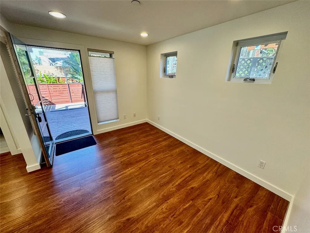 Recently remodeled, this is the lower floor of a duplex in the Woods Cove neighborhood- 1 block to Pearl Street beach. Amazing details, large deck in back where the "front" door is. Hardwood floors, quartz stone countertops, mosaic tile backsplash, stainless steel appliances, designer lighting. A bar counter adds seating to this high end unique space. Bathroom has a farm style porcelain sink, mosaic tile details. Laundry is located in the community laundry room. Parking for a single car in front driveway . A communal backyard space is available. Water, trash, and gardener are included in rent. Tenant pays $50.00 per month for gas and electricity.