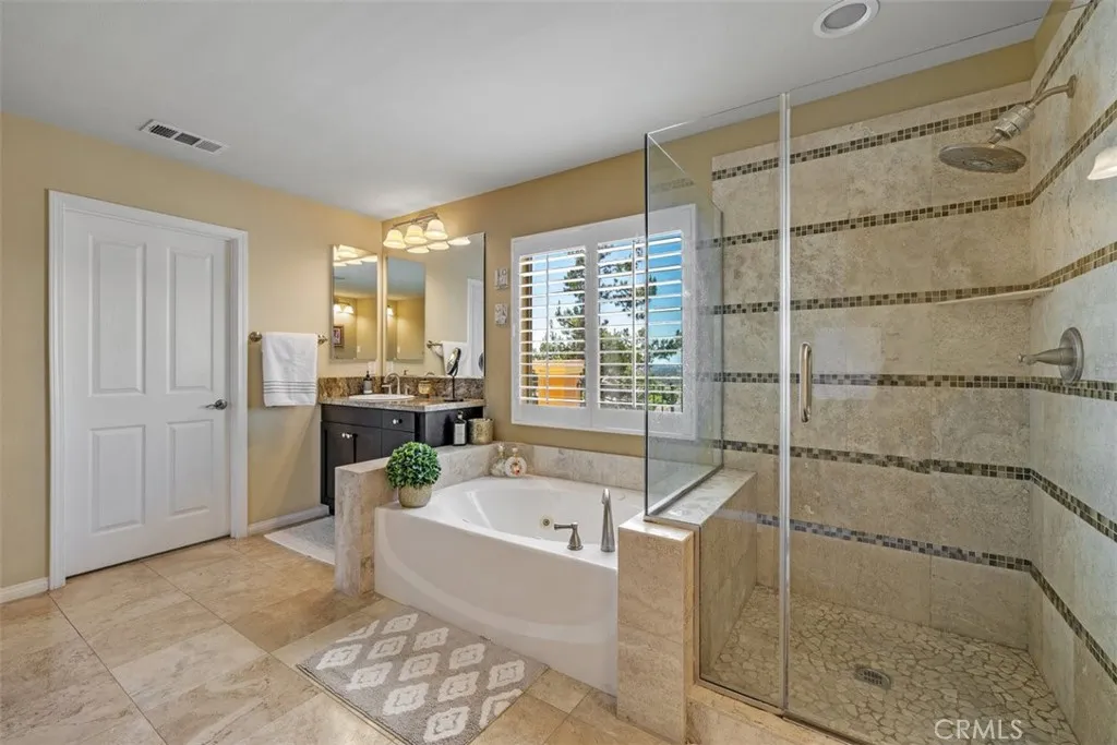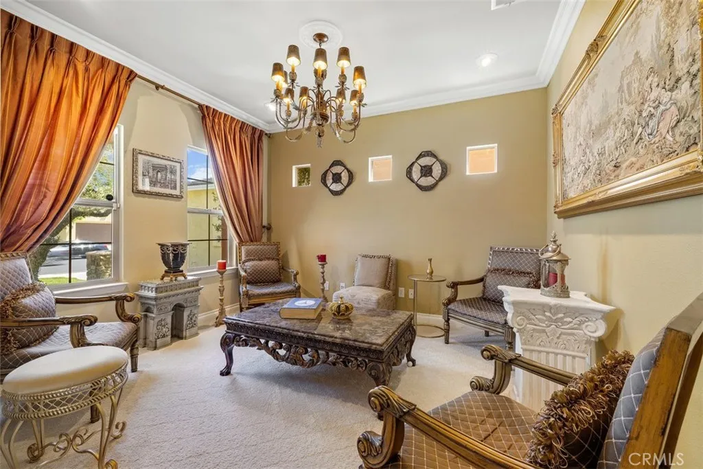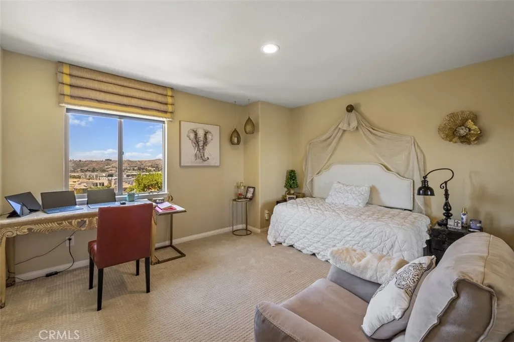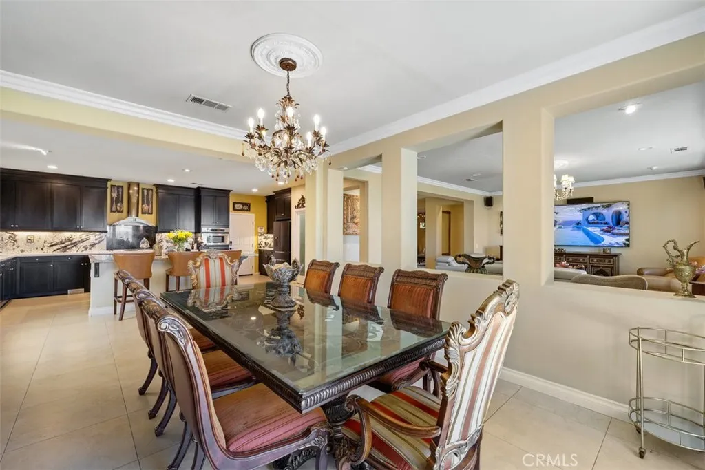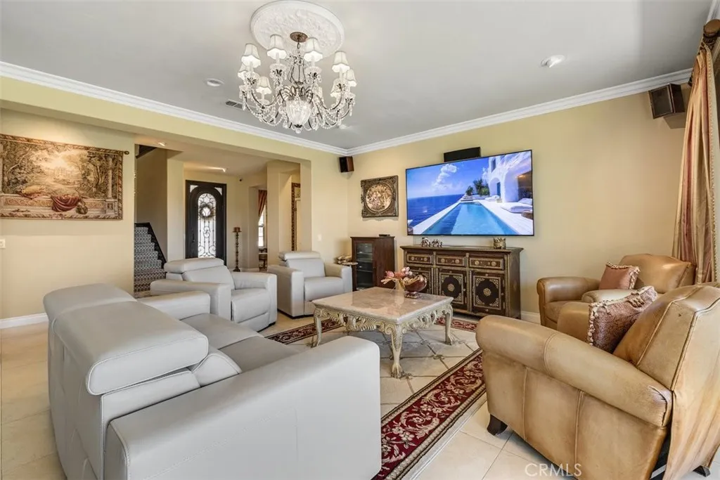 Once a Model, now a Supermodel. Luxury living is elevated in this stunning 5-bedroom, 4-bath home that has gone from model home to absolute supermodel status. Carefully curated for those who crave the perfect blend of function and opulence, every inch of this residence is designed to impress. Step inside through a custom wrought iron front door and be greeted by imported Spanish tile inlay floors and a luminous Schonbek crystal chandelier. The open-concept layout flows into a designer kitchen featuring a dramatic black Galaxy granite backsplash, oversized island, walk-in pantry, and built-in wine fridgeperfect for both daily living and entertaining in style. Serve up gourmet meals in the formal dining room complete with a cozy fireplace. Downstairs offers a private bedroom and full bath, ideal for guests or multi-generational living. Let the outdoors in when you open up 4-panel Fleetwood type glass doors that lead to a raised tile patio and a professionally landscaped low maintenance backyard. Entertain with a custom BBQ and an electric patio sunscreenall while enjoying panoramic city views. Upstairs, find a spacious in-law suite with a mini kitchenette, a large loft for flexible living, and a laundry room for added convenience. The expansive primary suite includes its own balcony, spa like bath with separate tub and shower, dual vanities and walk in closet. It's your own private retreat above it all. Other premium features include, elegant chandeliers in both the living and dining rooms LED accent lighting for art throughout the downstairs, a 3-car garage and newer custom