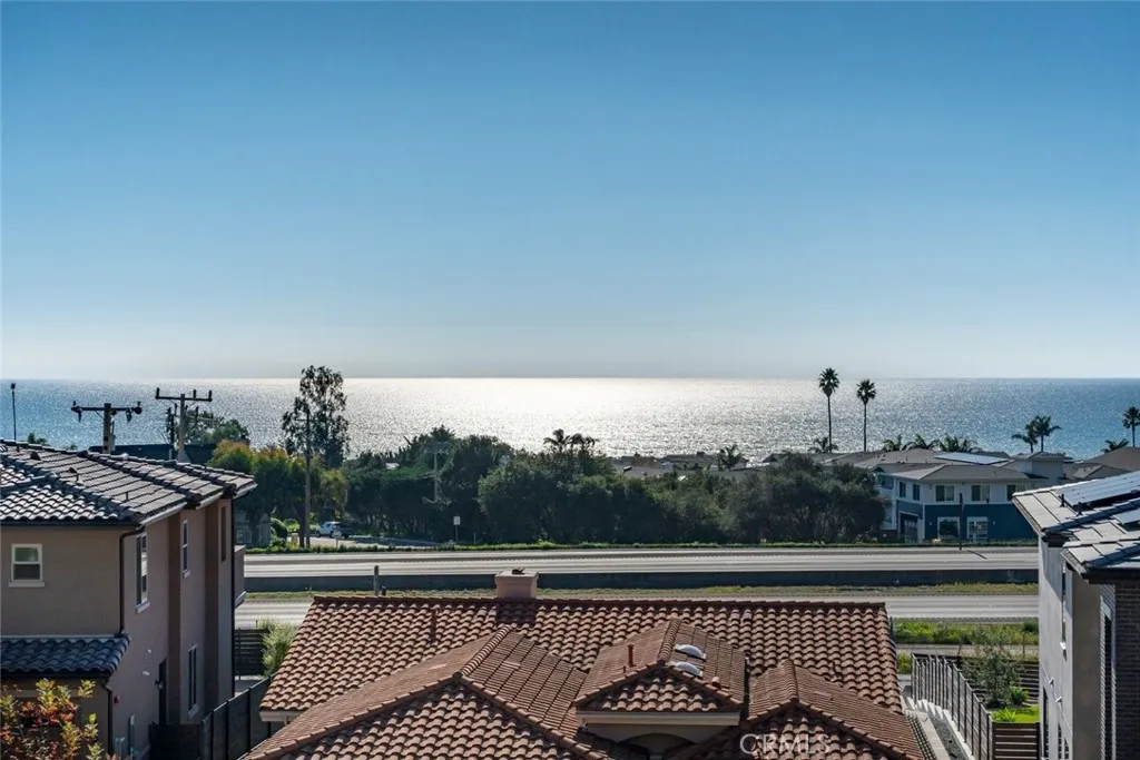 Front-row sunsets and effortless coastal luxury define this newly built, west-facing Mediterranean-inspired home with panoramic ocean vistas and a stunning foothill backdrop in Pismo Beach. Designed for comfort, accessibility, and modern living, this exceptional residence features owned solar, an in-home elevator serving the first through third floors and abundant storage throughout. A paver driveway and professionally landscaped grounds create a striking first impression, leading to the two-car garage and a thoughtfully designed entry level offering a tankless water heater closet, under-stair storage, and elevator access. The open-concept main living level is designed to impress, showcasing rich Bravada hardwood flooring, elegant paneled doors, and exceptional craftsmanship throughout. The ocean-view dining area flows effortlessly into the living room, anchored by a gas fireplace and opening to an expansive deck with sweeping ocean viewsperfect for entertaining or unwinding at sunset. The chefs kitchen is outfitted with all-new KitchenAid stainless steel appliances, including a range, range hood, dishwasher, refrigerator with ice maker, beverage center, and combo microwave wall oven. Quartz countertops, classic shaker cabinetry, a large island with seating, and a pantry closet complete the space, delivering both elevated style and everyday functionality. Also on this level is a versatile bedroom and a separate full bath are conveniently located just off the kitchen, ideal for guests, multigenerational living, or a private home office. A serene terrace complete with privacy