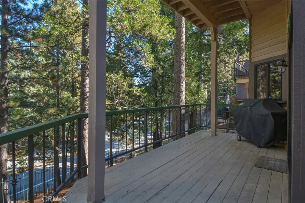 LAKE RIGHTS! Welcome to one of Lake Arrowheads finest gated condominium communitiesArrowhead Lake Estatesoffering full Lake Rights and an unbeatable location just a short walk to the waters edge. This spacious multi-level townhome features 3 bedrooms (or 2 plus an office/den), 2.5 bathrooms, and approximately 2,054+ sq ft of beautifully designed mountain living. A dramatic entry welcomes you with rich natural wood accents, abundant natural light, and soaring 25-foot cathedral ceilings anchored by a stunning wall of glass overlooking the pines. The main living level boasts a large living room with cozy brick fireplace, tree-top views, and access to an expansive entertaining deck. The adjoining dining room accommodates large gatherings, while the galley kitchen offers plenty of cabinetry, a gas range/oven with electric ignitor, and a charming breakfast nook. A few steps up is an additional den/office/3rd bedroom with its own fireplace and wood-paneled wallsperfect as a private workspace or guest spaceplus a convenient half bath. Upstairs, the primary suite is a true retreat with high ceilings, a private balcony for morning coffee, an oversized spa tub with peaceful tree-top views, dual vanities, separate shower, and a massive walk-in closet. A generous guest bedroom and full bath are located at the opposite end of the home, along with the laundry area for added convenience. Additional highlights include: Dual balconies with forest views Huge unfinished basement ideal for extra storage Beautifully maintained interior Huge windows capturing mountain wildlife and sunlight T