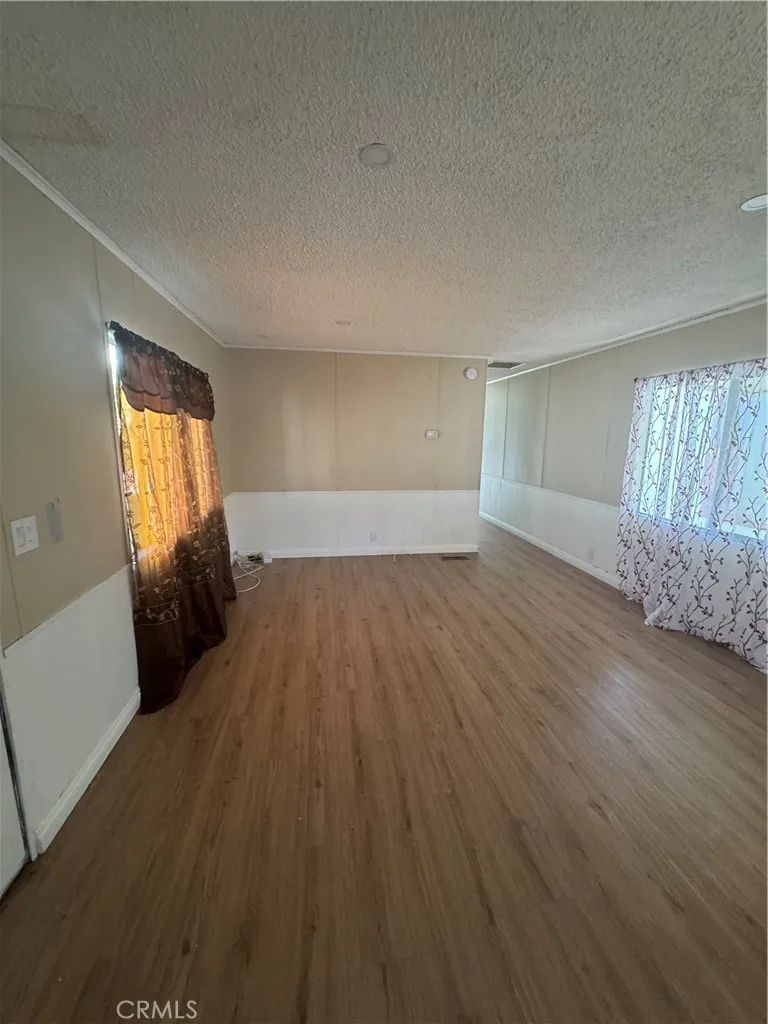 Spacious floor plan with two bedrooms and large full bath. Kitchen features extra counter and cabinet space and a spacious dining room. Living room features large windows creating an abundance of natural lighting. Newer vinyl wood flooring throughout the entire home. Separate laundry area in the home for convenience. Community features are the following: pool, spa recreation room, billiard room, laundry and showers.