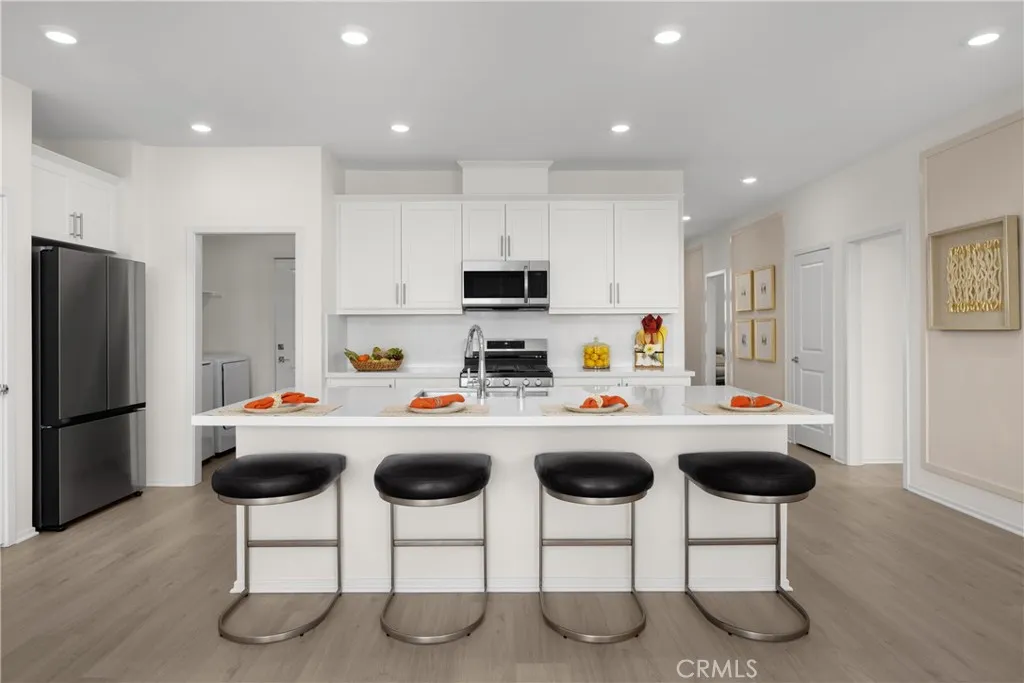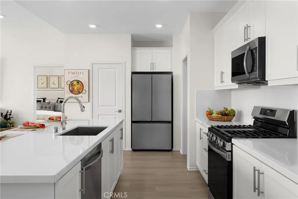 This is modern, single-level living at its finest. Pacific Parkview Plan 2 delivers 2,118 sq. ft. of thoughtfully designed space, featuring 5 bedrooms and 3 full bathrooms with the flexibility to convert one bedroom into a home office or flex space. Designed for both everyday comfort and entertaining, the open-concept layout showcases a spacious great room with volume ceilings and abundant natural light. The chef-inspired kitchen features quartz countertops, white thermofoil cabinetry, a large center island, recessed lighting, and Samsung stainless steel appliances. Stylish carpet, vinyl, and tile flooring complete the home with a clean, modern finish. Enjoy a spacious lot with added privacy, surrounded by single-story homes, creating a comfortable and open setting. Pacific Parkview will feature three community parks, including a dog park, and is just minutes from Big League Dreams Sports Park, shopping, dining, and convenient freeway access. Spacious, functional, and beautifully finished, this home checks every box. Schedule your private tour today. *Photos shown are of the Plan 2 model home and are for representation purposes only. Actual features, finishes, and layout may vary.