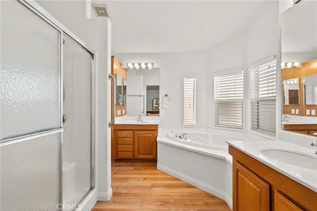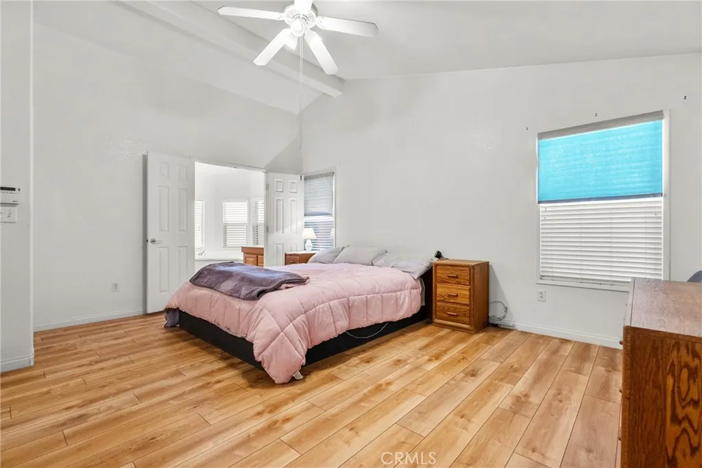 Price Improvement!! Lowest price for this square footage!! Welcome home to this spacious and beautifully maintained 3-bedroom, 2-bath manufactured home with a 2-car garage, nestled in a desirable guard-gated community! This 1,792 sq. ft. home is move-in ready and offers comfort, style, and functionality. Step up the front ramp with sturdy rails to a welcoming front porch, perfect for relaxing evenings. Inside, enjoy wood laminate flooring throughout, high ceilings, and attractive baseboards that enhance the home's open and airy feel. Ceiling fans in the dining room, primary bedroom, and second bedroom add year-round comfort. The large kitchen features an abundance of warm wood cabinetry, white appliances, and ample counter space for all your cooking needs. The spacious primary bedroom includes private backyard access, perfect for peaceful morning coffee or evening wind-downs. The luxurious primary bathroom boasts double-door entry, a soaking tub, separate walk-in shower, dual vanities, and plenty of space. The hall bath includes stylish wainscoting and additional cabinetry for storage. Outside, enjoy a beautiful and private backyard, complete with a dog run for your furry friends. A brand new composition roof has just been installed with permits, and the HVAC system has been recently serviced and is in excellent working condition. Located in a sought-after community offering pools, spas, tennis and basketball courts, a park, and RV parkingthis home combines low-maintenance living with resort-style amenities. Dont miss this one! Close to shopping and schools!