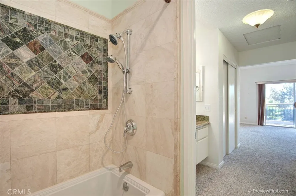 Beautiful condo with dual masters is located in the heart of Mission Viejo in desirable Coral Gardens community. The home offers a well laid out and spacious floor plan that features additional room that could be used as an office, den, or playroom downstairs. You enter through a gated private court yard to the front door. The kitchen is light & bright & is updated with granite counter tops & backsplash, gas range and travertine flooring which is also featured in the hallway & downstairs updated bath. The dining room is open to the family room with a cozy fireplace, warm hued wood flooring, upgraded base boards & high volume ceilings. There is a slider that leads to the LARGE back patio area which is extremely private and offers a peaceful view of lush trees & greenery. It offers a perfect spot for relaxing or entertaining. The upstairs master bedroom has a sliding glass door that bathes the room in natural light & its private balcony with no neighbors behind you giving you a private oasis. Wow, the master bath has been nicely upgraded with granite counter tops, travertine flooring & shower accents, updated lighting & fixtures. The lower level bedroom's bath has also been updated. Coral Gardens community includes a pool, spa, and tennis courts. Very close proximity to Lake Mission Viejo which offers beach access, fishing, boating, paddle boarding, free summer concerts, and much more! Lake, shopping, grocery stores, and public transportation are all within walking distance! Washer/Dryer & Refrigerator included!