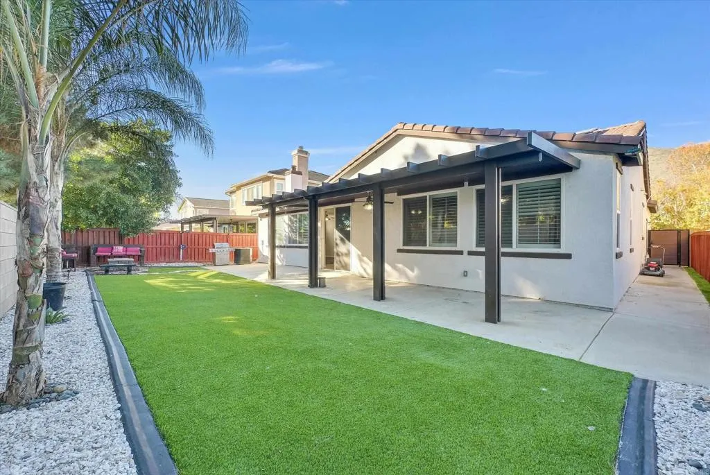 Move-in ready and beautifully upgraded 3 bed, 2.5 bath home with a 3-car garage in a low-HOA community! This property features an updated kitchen with refreshed cabinets and counters, 2021 flooring, plantation shutters on most windows, a stylish barn door, and modern electrical switches/outlets. The backyard is designed for low maintenance and enjoyment, offering artificial turf, an aluminum patio cover, and a built-in fire pitperfect for entertaining. Community amenities include: Clubhouse Two pools Parks Paddle boats Picnic areas Walking/hiking trails Nearby dog park This upgraded home combines comfort, convenience, and modern finishes throughout!