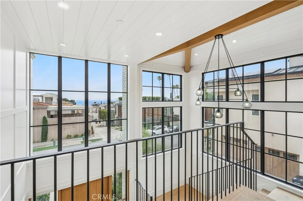 Thoughtfully designed by renowned Brandon Architects and expertly built by Legacy Custom Homes, this brand-new, FULLY FURNISHED, custom masterpiece is just moments from the sand and offers 3 bedrooms and 3.5 bathrooms across a flowing, open-concept floor plan. Wide-plank white oak flooring runs throughout, lending warmth and continuity to every space. Expansive walls of glass flood the interiors with natural light and foster a seamless indoor-outdoor connection, epitomizing refined coastal living. The quintessential Corona del Mar front patio features a built-in fireplace and opens through disappearing doors to a welcoming living room with its own fireplace and custom built-ins. At the heart of the home, the gourmet kitchen is anchored by a dramatic honed granite island with seating, and equipped with an 8-burner range and pot filler, extensive cabinetry, and a walk-in butlers pantry with prep sink, generous storage, appliance garage, and built-in microwave. Motorized drapery and curated designer finishes enhance both comfort and sophistication. Additional amenities include a mudroom conveniently located off the two-car garage and a spacious laundry room with sink, countertops, and custom cabinetry. The primary suite is a true retreat, complete with sweeping ocean views, a cozy fireplace, custom built-ins, an oversized walk-in closet, and a spa-caliber bathroom with soaking tub, dual-sink vanity, and walk-in shower. The homes expansive rooftop terrace provides a built-in barbecue and panoramic views that span the ocean, harbor, Catalina Island, and sparkling city lights. Pe