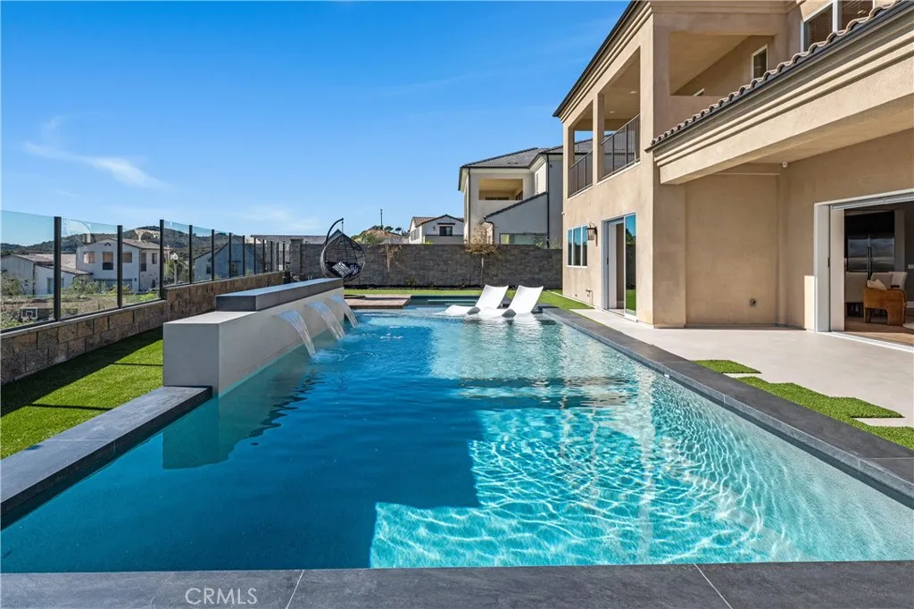 BACK ON THE MARKET - due to no fault of Seller. Perched behind the security gates in the "Viewpoint Collection" by Rutter Homes of the exclusive Saddle Crest community, on one of the most coveted hillside lots, this extraordinary semi-custom residence captures breathtaking 180 panoramic views spanning canyons, city lights, and sunsets toward the Pacific. With over $750,000 in premium upgrades, this stunning home showcases the highest level of modern luxury and craftsmanship inside and out. From the moment you enter, youll experience refined sophisticationsmooth museum-finish walls, high ceilings, designer French Oak flooring, and a floor-to-ceiling porcelain fireplace set the tone for elegant living. Expansive folding glass doors seamlessly connect indoor and outdoor spaces, framing spectacular vistas from nearly every room. The gourmet chefs kitchen is a masterpiece of form and function, featuring a 72-inch Sub-Zero refrigerator and freezer, premium Wolf range and double ovens, two dishwashers, and an extended waterfall-edge quartz island. Ralph Lauren chandeliers accent the kitchen and dining areas, while casual and formal dining spaces invite entertaining in comfort. Thoughtful details include a dedicated dog wash/grooming room, upgraded farmhouse sink, glass shower enclosures, and automated shades. The flexible floorplan features two luxurious primary suites, one on each level. The upstairs retreat offers dual bathrooms, a spa shower, and two expansive walk-in closets, while the downstairs suite is ideal for guests or multi-generational living. Step outside to a resort-
