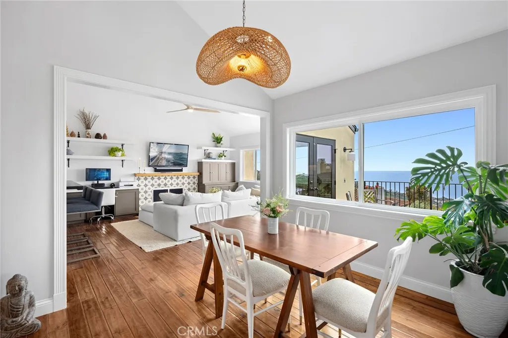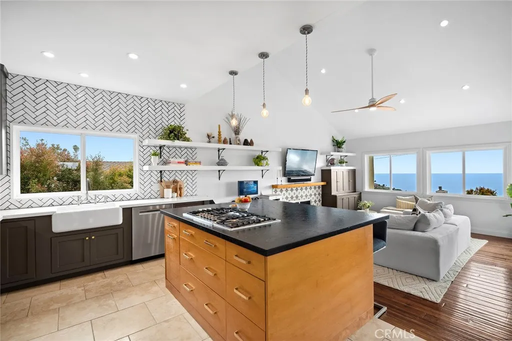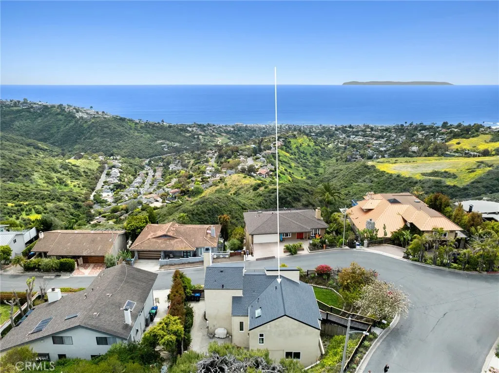 Enjoy breathtaking ocean views from this beautifully reimagined residence in Laguna Beachs highly sought-after Top of the World neighborhood. Perched on a generous corner lot at the end of a tranquil cul-de-sac, this home is thoughtfully positioned to capture stunning ocean, canyon, and city-light vistas. Epic sunrise and sunset views bring everyday enchantment to this indoor-outdoor sanctuary. Boasting a bright, open floor plan, the two-story home spans approximately 2,610 square feet and features four generously sized bedrooms and two and a half bathrooms, including a main-level primary suite, this home offers the convenience and comfort of single-level living. Inside, recent comprehensive renovations blend coastal sophistication with comfort, featuring open, light-filled living spaces, upgraded kitchen, built in cabinetry, a dedicated laundry room, custom lighting and ample storage throughout. At the heart of the home, a beautifully designed chefs kitchen boasts premium appliancesincluding a built-in Sub-Zero refrigerator and Bosch double oven and dishwasherand enjoys scenic ocean views. The kitchen opens to the main living area, which is anchored by a striking fireplace and framed by large windows that showcase sweeping views of the coastline, creating a warm and welcoming space to gather and unwind. Outdoor areas are equally refined, offering a variety of functional and peaceful spaces. Enjoy expansive lawns, terraced gardens with fruit trees, a custom water feature, outdoor shower, and a unique garden structureall designed for relaxation, entertaining, and embracing t
