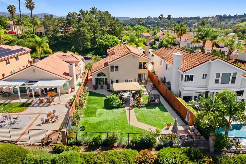 This lovely residence is ideally situated on a premium lot offering scenic views & exceptional privacy with no rear neighbors in the charming & highly sought-after subdivision of Rancho Niguel. This 4-bedroom, 2.5-bath home offers 2,065 sq ft of living space/ 5400 sq ft lot, perfectly positioned to capture breathtaking panoramic views of Laguna Niguel Regional Park, the lake, rolling hills, & sparkling city lights. Designed for both comfort & entertainment; the backyard features low-maintenance artificial turf, a stylish pergola, & ample space for festive gatherings. The large entry opens to the formal living & dining rooms enhanced with serene backyard views. While the updated kitchen flows seamlessly to the breakfast nook & cozy family room with fireplace creating a warm & inviting great room feel. Upstairs are 4 bedrooms and 2 full baths. Primary bathroom has been thoughtfully refreshed with new shower enclosure, tile, modern vanity, mirrors, & lighting. This is a great floorplan for optimal everyday living. Also, the home boasts a 3-car garage. Enjoy the added benefit of membership to the exclusive Club at Rancho Niguel, offering resort-style amenities including multiple pools & spas, a full fitness center, clubhouse, outdoor cooking area & playground plus tennis, racquetball, & pickleball courts. This is Southern California living at its finest.
