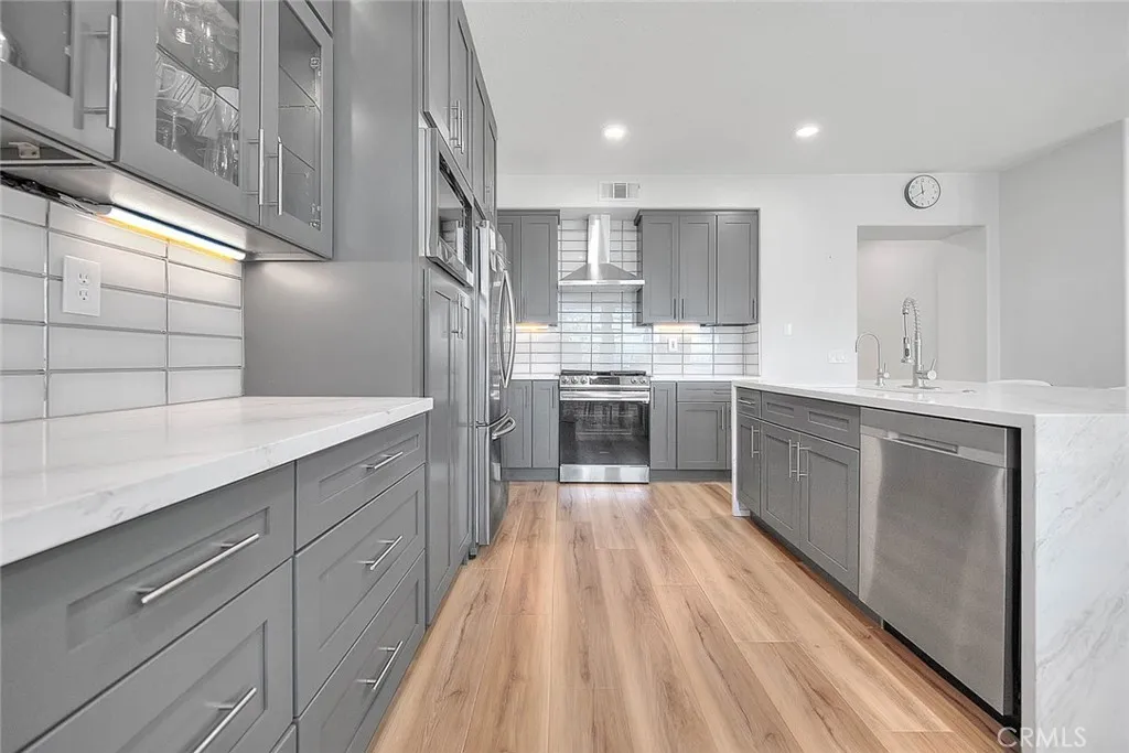 Stunning panoramic views of city lights and mountains. Nestled amongst Rowland Heights desirable residential Ridgemoor Community, gated with 24 hour security guard. Modern innovative renovations in 2024 with premium high-end finishes, featuring a new kitchen and two new bathrooms. New laminate wood floors on the main floor. New central air conditioning and heating unit, as well as new double paned windows. This luxury newly upgraded home offers 4 bedrooms + a bonus room, which can be used as a 5th bedroom. 3 bathrooms. An elegant grand foyer entrance with double doors and high ceilings. The open living room overlooks the city lights view. Formal dining room with new lights. The spacious family room features a cozy fireplace and opens into the gourmet new kitchen featuring a center island with quartz countertops, new cabinets, and new stainless steel appliances. The luxurious upstairs primary bedroom suite boasts picture windows, through which you can fully enjoy the breathtaking panoramic views. The new primary bathroom features dual vanities, a bathtub, and a separate shower. There are three more bedrooms, and more bathroom, plus a bonus room that can be used as a fifth bedroom on the second floor. This home offers a comfortable layout, privacy, and a relaxing outdoor space in an open concept back yard, with a patio and built-in BBQ, perfect for entertaining. Additional features include professional landscaping, attached 3 car garage, water softener system, tile roofing, recessed lighting, on a quiet, private cul-de-sac. Enjoy this newly remodeled home, designer upgrades t