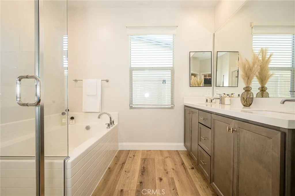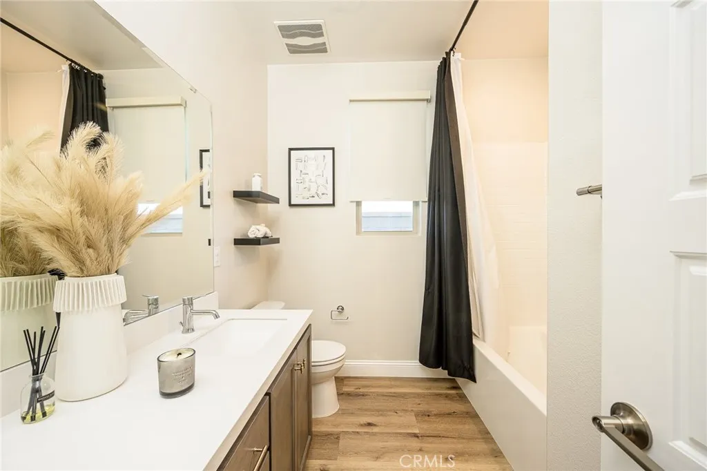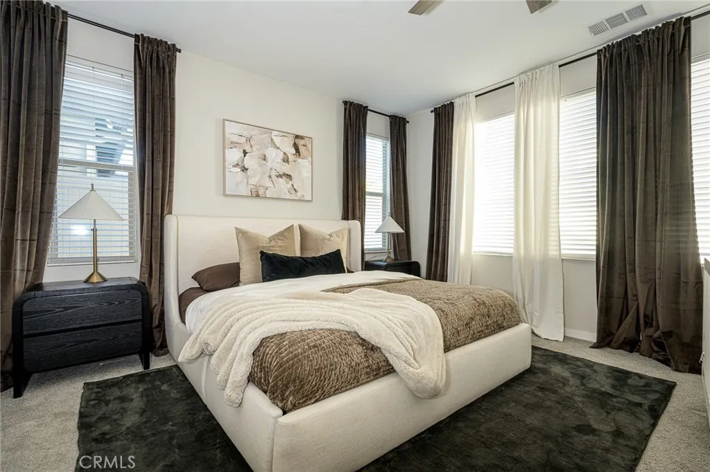 Welcome to this gorgeous neighborhood! Youll love this home in Menifee, CA. Enjoy cooking in this stylish kitchen with stainless appliances and a center island, great for food preparation. Discover a bright interior with neutral SPC waterproof vinyl flooring and plush carpet in all the right places. The main bedroom boasts a private ensuite with a walk-in closet. Other bedrooms offer plush carpet, ceiling fans, and sizable closets. Garage contains an EV capable outlet installed. All solar panels are paid for! Relax with your favorite drink in the fenced in backyard with a patio, lush grass, and great opportunity for adding personal touches. Don't miss this incredible opportunity.