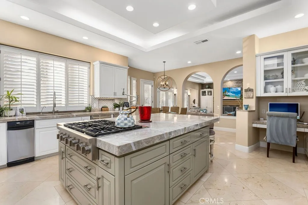 A superb opportunity to lease this custom Mediterranean residence, ideally situated on a quiet cul-de-sac shared by only three other homes, within the prestigious 24-hour gated community of Ocean Ranch in Laguna Niguel. Offered fully furnished & immaculately maintained, this exceptional home showcases quality craftsmanship, refined finishes, & thoughtfully curated furnishings throughout. The private rear outdoor patio is truly an entertainers dream, featuring a resort-style pool & spa with waterfall feature, a built-in BBQ with bar seating, & an additional secluded lounging area complete with firepit & sun lounger perfect for relaxing evenings. The heart of the home is the stunning gourmet kitchen, highlighted by an impressive center island with gas cooktop & pot filler, quartzite countertops, stainless steel built-in refrigerator & freezer, two dishwashers, a walk-in pantry, & a convenient study nook. The kitchen & adjacent family room, both enhanced by feature fireplace & wet bar, offer seamless access to the backyard entertainment spaces for effortless indoor-outdoor living. A generous main-level primary suite option provides a luxurious retreat with French doors opening directly to the rear patio areas. The second floor main Primary suite offers a spacious ensuite bathroom with dual vanities, makeup area, separate tiled shower, oversized spa tub, & dual-sided fireplace. The primary bedroom itself is a tranquil sanctuary, featuring a fireplace, ample seating, generous walk in closet & an abundance of natural light. Secondary bedrooms are generous in size overlooking the