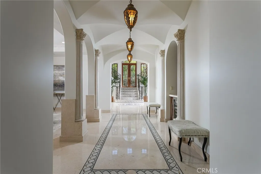 Enjoy elegant five-star living at this opulent ocean-view residence located in the esteemed gated community of Pelican Crest. Set on a cul-de-sac of four estates, the residence is supremely private and offers exceptional grounds including a private entry courtyard, manicured gardens with three fountains, and an entertainers backyard with saltwater pool and spa, barbecue, grassy areas, and an expansive patio ideal for al fresco dining or to enjoy views of the coastline, harbor, city lights, golf course, Palos Verdes, and Catalina Island. Thoughtfully designed and meticulously maintained, the sumptuous villa is comprised of eight bedrooms and ten bathrooms including three lower level bedroom suites and an exquisite master suite with soaring ceilings and awe-inspiring views. The finest artisan finishes are evident through the residence, such as sweeping dual staircases with iron railings, carved limestone fireplaces, intricately detailed moldings and millwork, stunning lanterns, and crystal chandeliers. The dreamy chefs kitchen is fully equipped with stainless steel appliances, oversized kitchen island, and opens to a breakfast room looking out at the pool. Formal and casual common areas offer an abundance of space; while a library or office, home theater, fitness room, wine room, elevator, and a 10-car garage deliver every desired amenity. With nearly every room enjoying access to a loggia or terrace, this exceptional residence effortlessly indulges in the Southern California lifestyle.