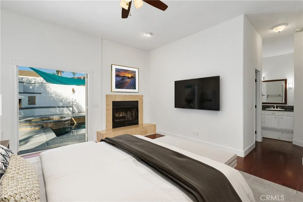 Discover this single-story pool home offering space, functionality, and access to one of Southern Californias most amenity-rich gated communities. Located in Canyon Lake, this 4-bedroom, 3-bathroom residence spans approximately 2,274 square feet and sits on a generous lot with a direct-access attached three-car garage. The home features a spacious, open layout with high ceilings and durable flooring throughout the main living areas. The remodeled kitchen includes white cabinetry, granite countertops, custom backsplash, stainless steel appliances, a large center island with seating, and a walk-in pantry. It opens seamlessly to the family room and dining area, creating an ideal setup for everyday living and entertaining. The primary suite offers a private retreat with its own fireplace, dual closets with built-in storage, and an en-suite bathroom featuring dual sinks, a soaking tub, a walk-in shower, and a separate toilet area. Additional bedrooms are well proportioned, with one currently configured as a home office featuring built-ins, providing flexibility for guests or remote work. Outdoor living is a standout feature, with a private backyard designed for entertaining, complete with pool, spa, outdoor kitchen, and fireplace. Covered patio areas provide additional space to relax and enjoy the surrounding setting. The direct-access, three-car garage features extra-tall ceilings, ideal for additional storage or specialty-vehicle needs. Solar helps offset energy costs. Canyon Lake is a private, guard-gated community with 24/7 security and an unmatched array of amenities, inclu