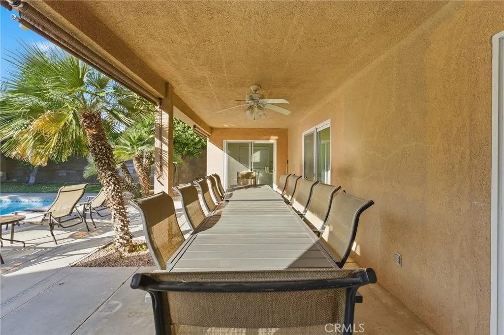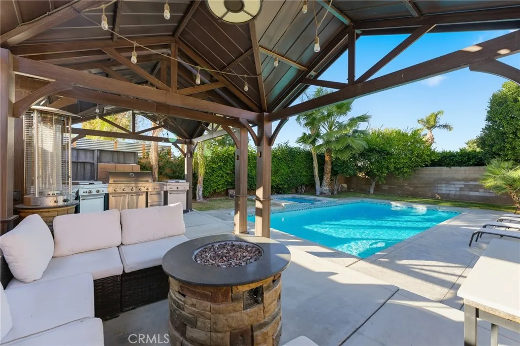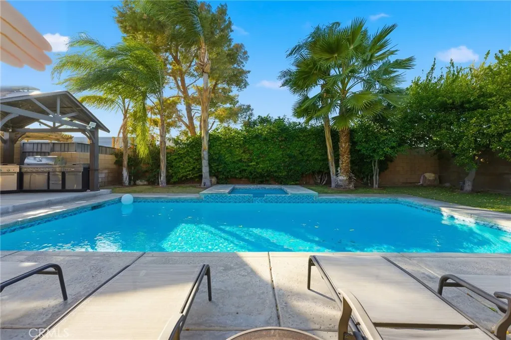This spacious, remodeled, move-in-ready 4-bedroom, 3-bath home offers 2,090 square feet of open-concept living designed for comfort and entertaining. Built in 2002, the layout flows effortlessly from the living area to the backyard through sliding glass doors, creating the ideal indoor-outdoor lifestyle. The expansive living and dining area is bathed in natural light and features a custom fireplace, with laminate flooring throughout the home. The updated kitchen includes a breakfast nook, stainless steel appliances, and direct access to the backyard patio, making it very convenient and functional for daily use or hosting large parties. The primary bedroom, along with another bedroom, also has direct access to the backyard. The garage has been converted into a game room, providing extra space for gatherings. Lets talk about the show-stopping backyard! Step outside to your private oasis, featuring a covered patio, large pool and spa, a built-in BBQ area with a direct gas connection, and plenty of room to relax or entertain amid mature palm trees and lush landscaping. Additional highlights include a full remodel completed in 2022-2023, with updated kitchen, bathrooms, flooring, custom BBQ and so much more. Gated access for extra privacy, and lush landscaping with mature palm trees in both the front and back yards. All this is just a short drive from Downtown Palm Springs, top dining, shops, and easy freeway access.