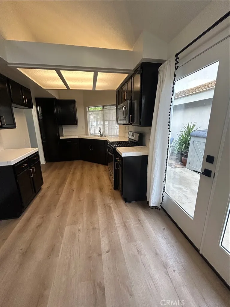 Charming single story home located in a Cul De Sac. This 3 bedroom 2 bath home boasts cathedral ceilings, freshly painted kitchen cabinets and luxury vinyl flooring throughout. Attached 2 car garage. One of the secondary bedrooms has an atrium. Breakfast nook in kitchen. French doors leading to side courtyard. Solid patio cover in the back yard. New oven, refrigerator and washer/dryer. This home is located in the community of Village Grove, walking distance to Palomar Village shops and dining. Gardener, water, trash and HOA dues are included in rent. CC&R's will be provided.