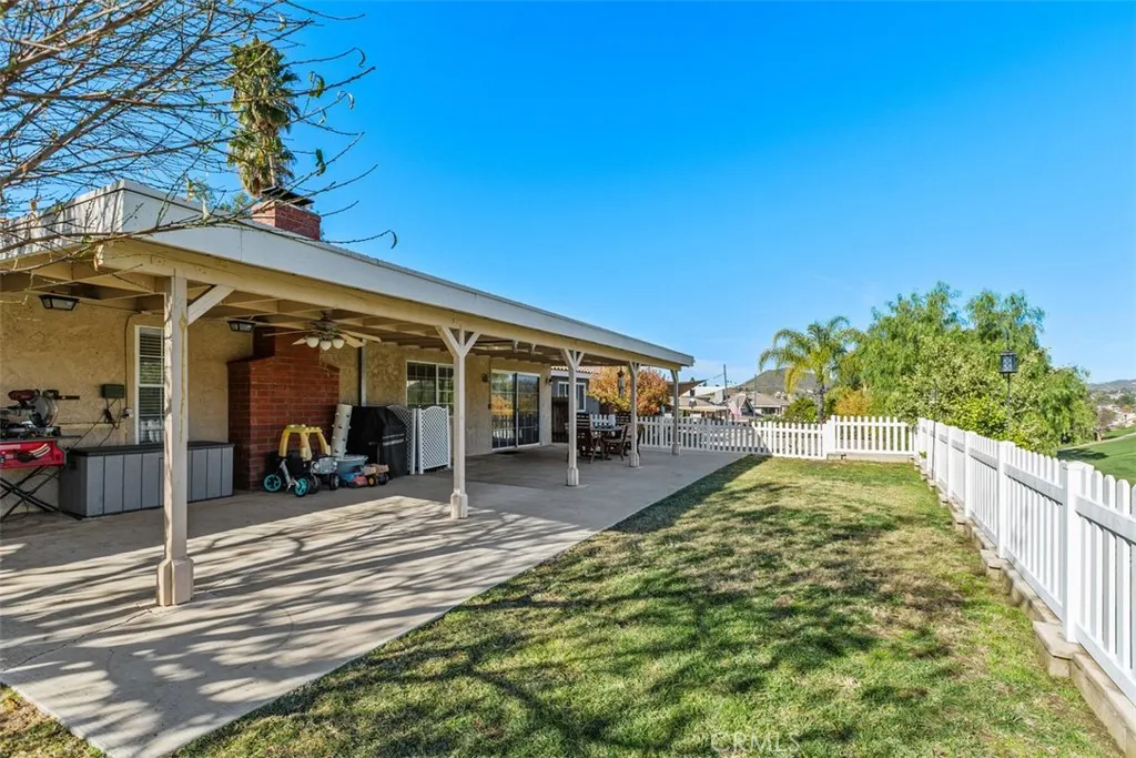Don't miss this Canyon Lake golf course beauty with its own solar system. See this spacious 3-bedroom, 2-bath home with 1825 sq ft. This family home features a welcoming living room that flows into a large great room, along with both a formal dining area and a casual dining space off the kitchenperfect for entertaining and everyday living. The upgraded kitchen boasts Corian countertops, a tile backsplash, and ample cabinetry with self-closing drawers. Both bathrooms have been tastefully upgraded, and vinyl flooring runs throughout the home. A cozy wood-burning tiled fireplace adds warmth and charm to the living area. Home offers a large dining room /game room.. Additional highlights include a two-car garage and a nicely enclosed backyard with vinyl fencing. This backyard overlooks a beautiful view of the golf course. In the backyard, Peach, pink lemon, and blood orange trees harvest delicious fruit. Canyon Lake offers resort-style amenities centered around its private lake, includingpool and spa, boating, fishing, water sports, plus an 18-hole golf course, equestrian center, tennis/pickleball courts, numerous parks with beaches & playgrounds, restaurants (Lodge, Country Club), and a lively Activity Center with classes, dances, billiards, and a fitness center, all within a 24/7 guard-gated, golf-cart-friendly community.