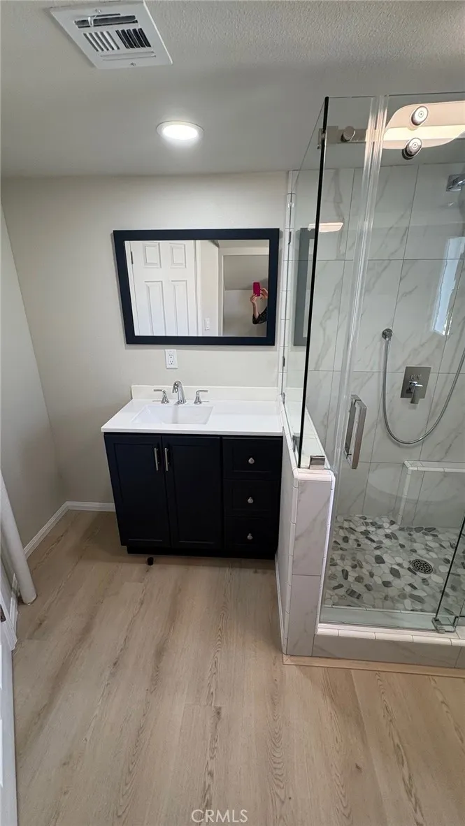 Completely remodeled 3-bedrooms, 2-bathroom on the 2nd floor, and has front parking for 2-3 cars. Features brand-new engineered vinyl flooring, new doors, new drywalls, new plumbing, new electrical fixtures, new recessed lights, and fresh paint throughout. The spacious kitchen opens to the family room and has been fully updated with brand-new cabinets, new granite countertop, new sink and faucet, new appliances, including a gas range, microwave, and refrigerator. The home also has a brand-new central AC/heating system. Laundry Room with Brand New washer and Dryer. Both bathrooms are fully remodeled with new showers, modern fixtures, and a new bathroom vanity. This bright and clean condo offers a comfortable and modern living space, Located close to Santa Ana historic commercial downtown. Move-in ready and beautifully fully upgraded.