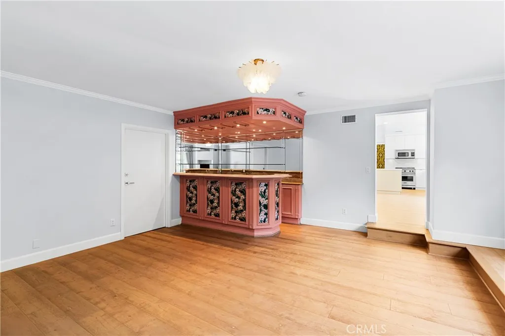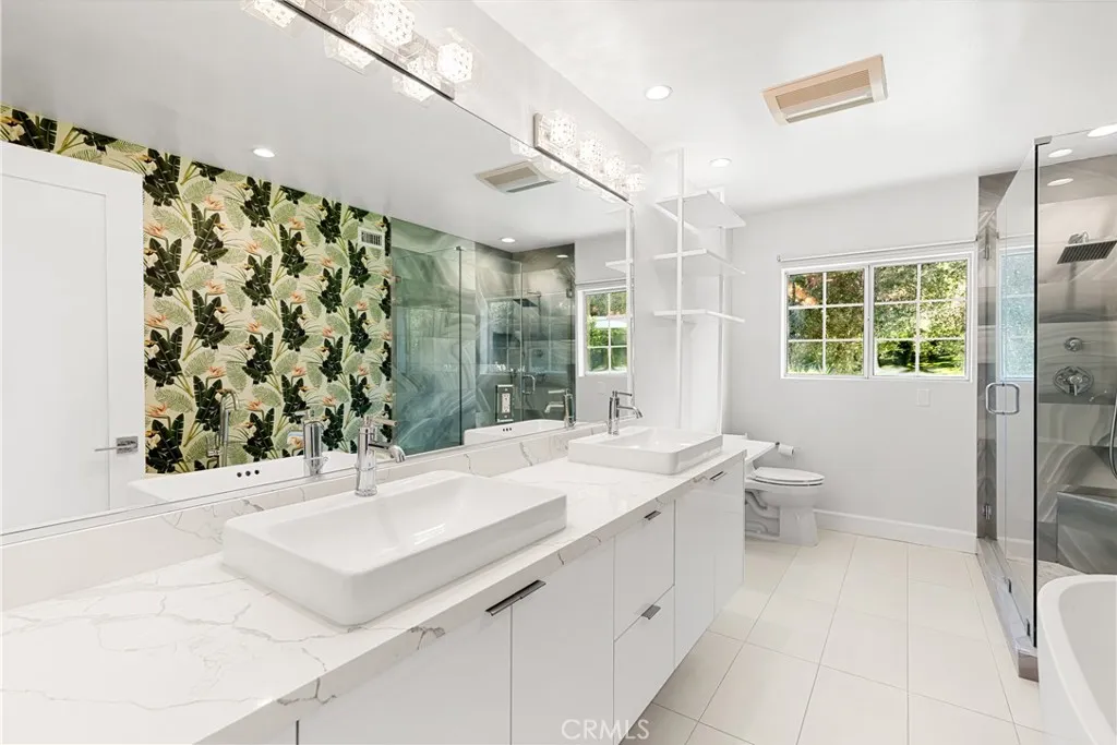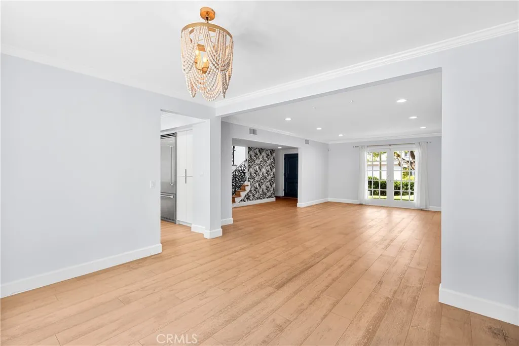 Welcome to this beautifully maintained 5-bedroom, two-story Traditional home situated in the highly sought-after Dona section of Studio City. The property is filled with natural light and character, featuring an inviting floor plan that showcases elegant wood floors, classic crown moldings, and a thoughtful indoor/outdoor design. The formal entry leads into a large living room highlighted by a fireplace with a marble hearth, creating a warm and welcoming atmosphere. Adjacent to the living room is a generous formal dining room, which connects seamlessly to the remodeled center-island kitchen. This chefs kitchen is equipped with Viking appliances, ample storage space, and a cozy breakfast area for casual dining. A step-down family room offers picturesque views of the rear yard and features a vibrant corner wet bar, perfect for entertaining guests. Completing the downstairs layout is a guest room with a remodeled bath, providing comfort and privacy for visitors. The skylit staircase leads upstairs to the primary suite and three additional bedrooms. One secondary bedroom includes two walk-in closets and a private balcony, while the other two adjacent rooms feature multiple built-ins for added convenience. The remodeled full bath upstairs is accented by dual sinks, catering to the needs of a busy household. The oversized primary suite is a true retreat, with its own private balcony offering partial city and hillside views. It boasts walls of built-ins and a luxurious bathroom complete with dual vanities and a soaking tub, ensuring both comfort and elegance. The backyard is desig