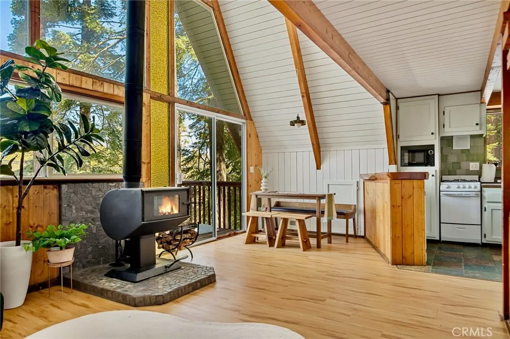 This 3 bedroom 1.5 bath A-Frame treehouse cabin has all the rustic charm with modern touches. Sitting high up in the trees arriving at a convenient mud room to take off your snow boats before entering the cozy living room with fireplace. A rustic barn door separates the family room with the laundry and half bathroom. Bedroom one is directly off the family room entry area. The large front deck is perfect to take in the mountain air. The second main floor features an open living room with wood burning stove, dining and kitchen. This main floor showcases the beautiful A-Frame design and windows bringing in mountain sunshine. Modern touches adorn the house at every corner without losing the rustic cabin feel. A smaller deck with built in bench seating is located off the main floor living area. Bedroom two and a full bathroom make up this level. The third level has an A-Frame loft bedroom with a small office area with a view to the living room and trees. A storage-work shop area is located as you walk up to the house and a front yard terraced for a garden. Located across the street from the National Forest with hiking trails and just minutes to the local ski resort makes this an ideal vacation home or a full-time paradise in the trees.