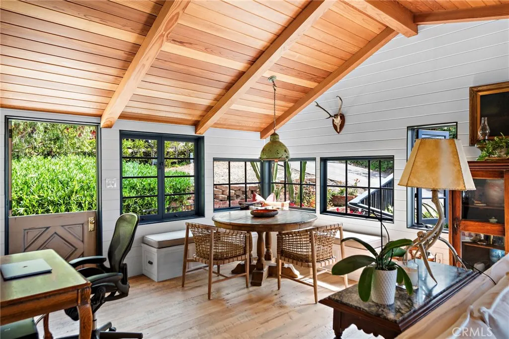 Available March 1 Modern Farmhouse Rental in Laguna Beach A Private Mini Estate with Ocean Views Experience the perfect blend of modern luxury and farmhouse charm in this private mini estate, ideally situated in South Laguna Beach on a spacious lot. Designed for both relaxation and entertaining, this thoughtfully crafted home offers breathtaking ocean views and ultimate privacy. Inside, the home features beautiful reclaimed hardwood floors flow throughout the home, adding warmth and character. The inviting living room boasts a cozy fireplace, while a separate office nook provides a serene space to work, framed by stunning ocean views. The beautifully appointed bedroom with a queen bed and a spa-like bathroom, complete with a walk-in shower and elegant Calacatta marble finishes. The gourmet kitchen is a chefs dream, equipped with a Wolf stove, Sub-Zero refrigerator, drawer dishwasher, and a charming built-in dining boothperfect for intimate meals. Step outside to the expansive outdoor living space, designed for entertaining and relaxation. A built-in barbecue, dedicated dining area, and multiple lounge spaces make it ideal for hosting gatherings or unwinding under the stars. The lush yard offers ample green space for relaxation and play, creating a tranquil escape. With three dedicated parking spots and a prime location just steps from Lagunas most beautiful beaches, top-rated restaurants, and charming cafs, this exceptional home offers the ultimate coastal lifestyle in a serene and private setting. Now available for rent, dont miss this rare opportunity to experience Lagun