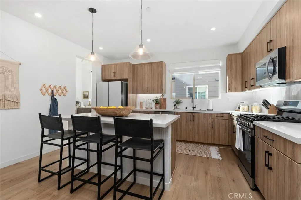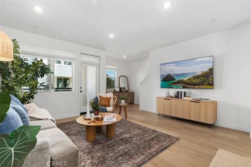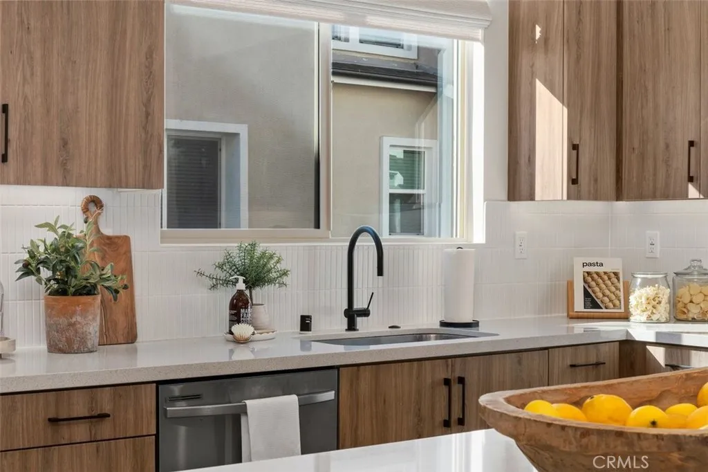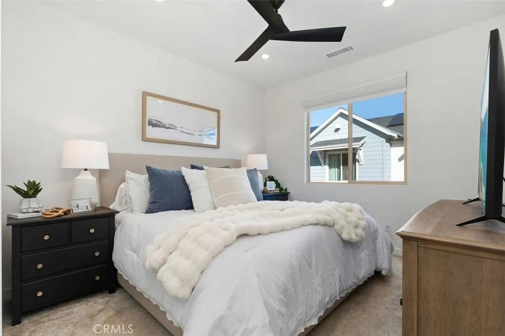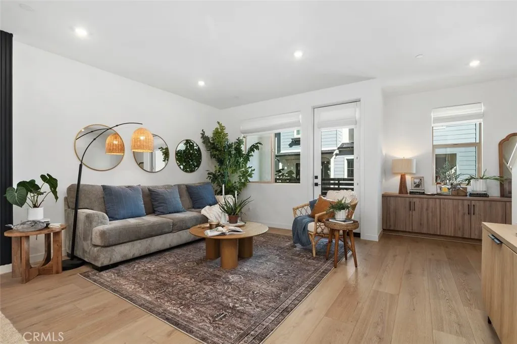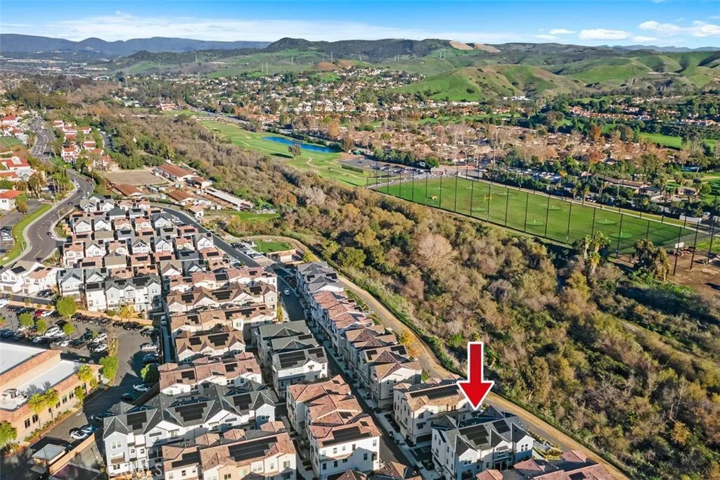 Nestled within the hillside setting of Avelina in San Juan Capistrano, this nearly brand-new 4 bedroom, 3.5 bath with owned solar Spanish beauty offers effortless indoor living and scenic trails just outside your door. A gated front patio sets the tone, inviting you to slow down and take in views of the rolling coastal hills. Step through the impressive front door into a welcoming entry layered in blonde luxury vinyl plank flooring. The main level offers a flex room that easily adapts as life evolveswork, guests, play along with thoughtful storage and a beautifully appointed bath. Upstairs, sunlight pours through multiple windows, filling the open-concept living space with warmth and energy. Designed as a natural gathering place, the kitchen beckons with warm wood-grain cabinetry, white quartz countertops, and an expansive island detailed with custom tile and pendant lighting. The oversized walk-in pantry is a hidden gem, offering sunlit workspace, appliance storage on generous counter space, and floor-to-ceiling shelving that keeps everything beautifully within reach. A striking wood accent wall anchors the dining area, flowing seamlessly into the family roomperfect for movie nights, celebrations, or slow weekends at home. Beyond, a private balcony entices you to linger with a favorite drink, savoring uninterrupted views of the golf course and hillside beyond. High ceilings, built-in storage and a convenient powder bath complete this level. The third floor is a peaceful retreat, featuring three additional bedrooms, two full baths, and laundry. The primary suite positioned