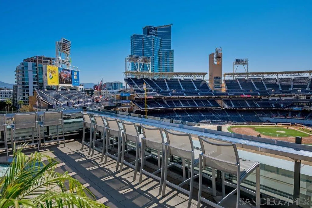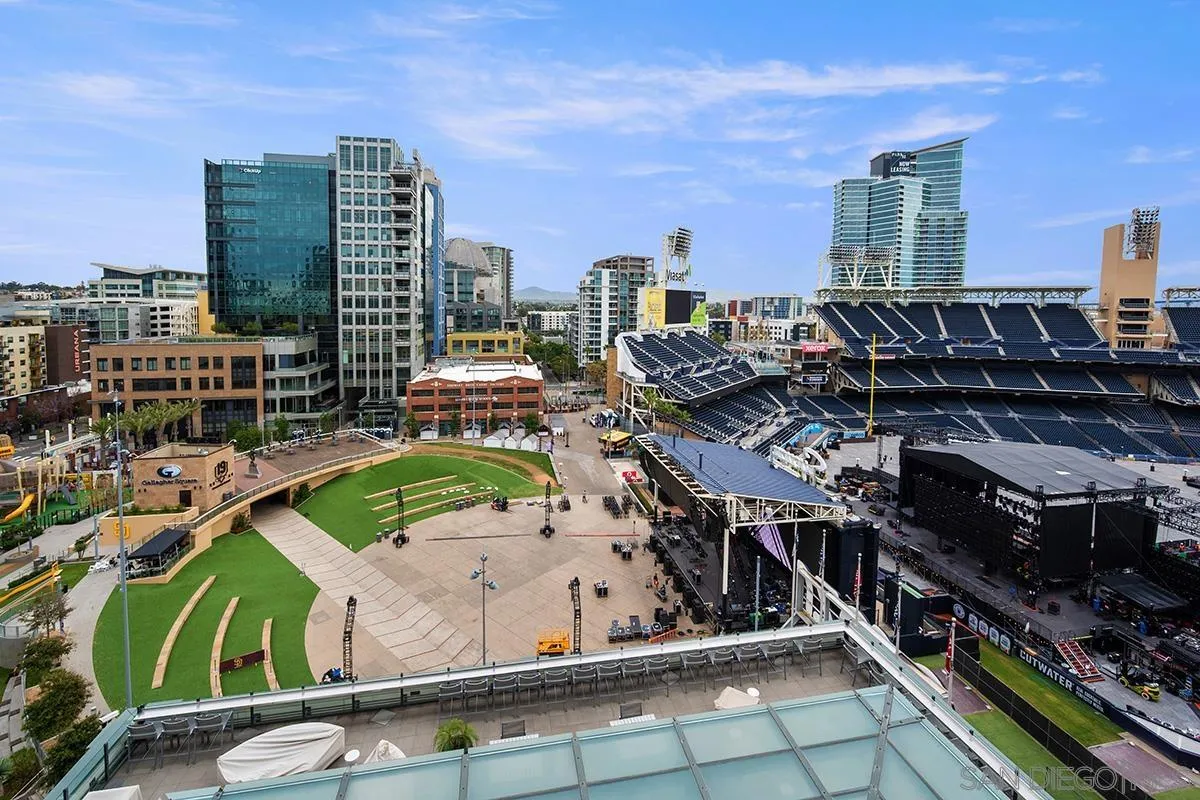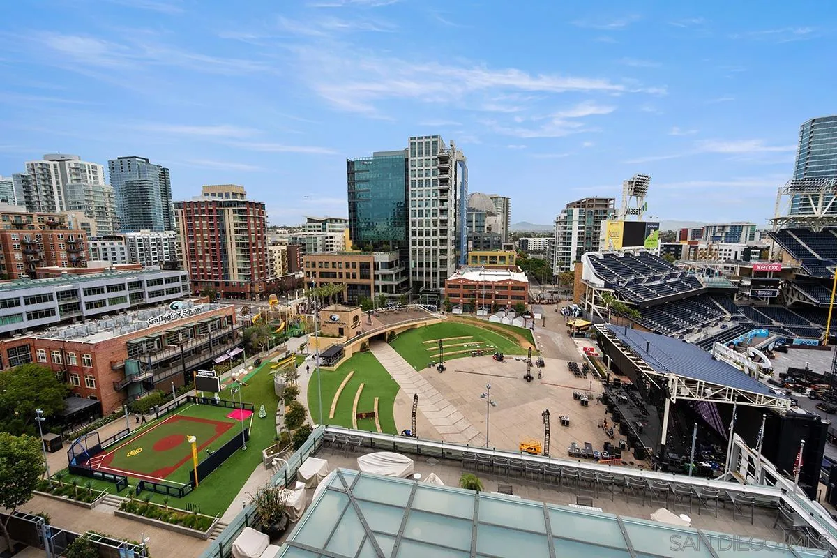 This 10th floor 2 bedroom/2 bath condo at The Legend is a homerun; captivating views directly into San Diego’s famed Petco Park! First time ever offered for sale by the original owner, enjoy baseball games and open-air concerts right from your living room or your spacious balcony – or from the incredible 7th floor ‘Club Legend’ deck. Great natural light from expansive windows, new paint and carpet, a split-bedroom floor plan ideal for privacy, and an open-concept granite and stainless kitchen. Complete with a parking space near the elevator and private storage just steps from your front door. First of this floor plan to hit the market in 6 years! See supplement for more details.
