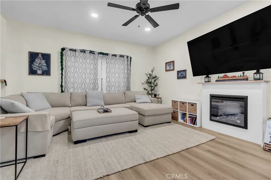 Welcome to 325 E Champman ave. Very Clean Property, Beautiful Vaulted Ceilings when you enter the living room. Lots of light in the Kitchen, Stainless steel Appliances , built in Microwave and granite counter tops. Beautiful LVP waterproof wood floors throughout the whole property, recessed lighting, and electric fireplace. Spanish tile Roof, A cozy Patio where you can enjoy your morning coffee. Very Large Primary Bedroom with master bathroom. This property has 1 covered carport parking space with storage locker, and one reserved uncovered parking space. HOA includes a pool, jacuzzi, outdoor BBQ, water and trash. Great central location!! Wont Last Long Come See!
