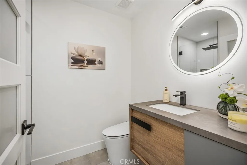 Experience unparalleled luxury in this impeccably remodeled, move-in-ready home that seamlessly blends sophistication with modern comfort. From the moment you step inside, you're greeted by an abundance of natural light and breathtaking media/fireplace wall that creates an inviting and serene ambiance. The sunny patio serves as a versatile space, perfect for relaxation or entertaining guests. The home's transformation includes a comprehensive renovation featuring central HVAC and a series of bespoke architectural enhancements. Notably, the living room boasts a stunning skylight and a custom wood and tile media surround, complemented by tailored lighting solutions. The residence exudes warmth and elegance throughout. The gourmet kitchen is a chef's dream, equipped with custom cabinetry, quartz countertops, and top-of-the-line appliances and fixtures. A generous waterfall-style island provides ample counter space and serves as a central hub for social gatherings. Retreat to the luxurious master suite, thoughtfully designed en-suite bathroom features a spacious, custom-tiled shower and premium appointments, offering a spa-like experience. Additional highlights include abundant built-in storage solutions and a conveniently located stackable washer and dryer in the hall closet. Parking is easily accessible, adding to the home's convenience. Residents of Laguna Woods Village enjoy access to an array of exceptional amenities, including golf, swimming, tennis, and a vibrant selection of clubs and social activities, all within a premier 55+ community. For a comprehensive view of thi