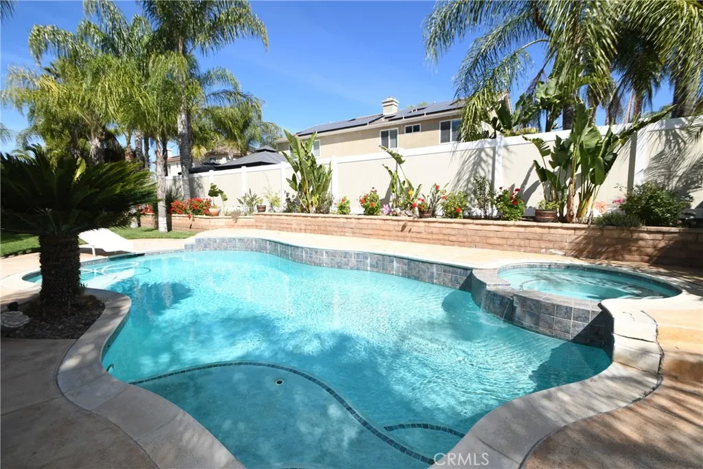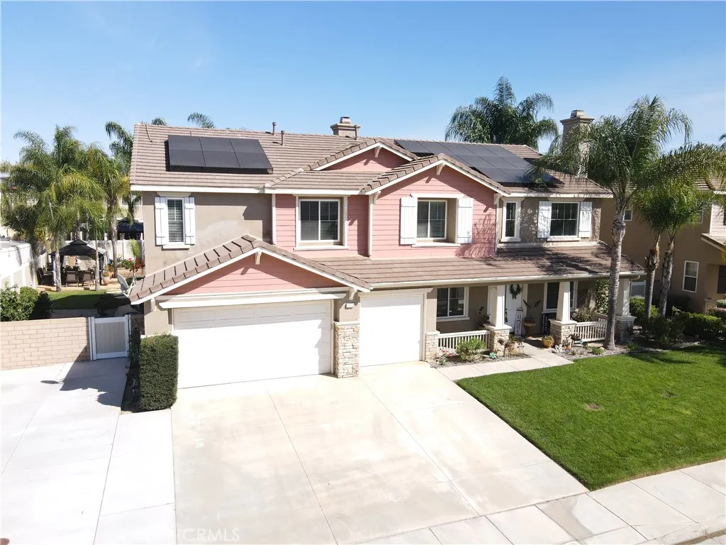 Spacious Two-story home located in a quiet Cul-de-sac in the desireable city of Menifee. 5 Bedrooms, 3.5 baths providing ample room for comfortable living. The open floor plan features natural light, a large kitchen with abundant cabinetry, pantry and breakfast area that opens to the family room. The home offers flexible space for guests, a home office, or multi-generational living. step outside to a private backyard featuring a sparkling pool and covered patio, perfect for relaxing, additional highlights include, AC, Fireplace, Ceiling Fans and a 3 car garage.