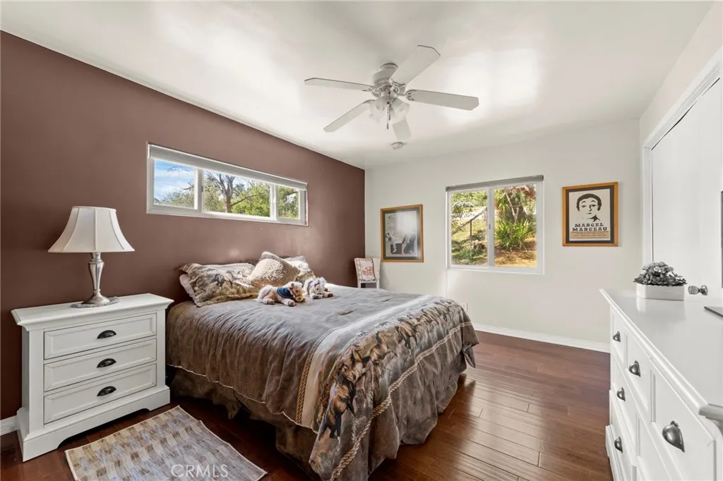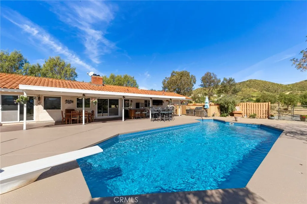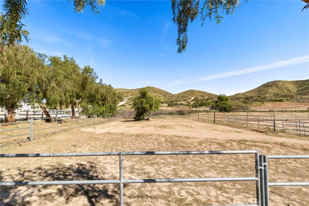 Experience the ultimate equestrian lifestyle on this exceptional 3-bedroom, 4-bath ranch estate located in the scenic community of Agua Dulce. Set on 3.7 fully fenced and gated acres, this property combines privacy, functionality, and breathtaking natural beauty. The main home features a large primary suite with a walk-in shower and a Aquatic Serenity Drift Bath, massive walk in closet, two additional bedrooms and three additional bathrooms, including one outside for pool guests with a walk in shower. Entertainers gourmet upgraded kitchen complete with a walk-in pantry, beverage fridge and modern appliancesperfect for family living and entertaining. Don't forget the hand hammered custom copper farm sink. Modern comforts include engineered wood flooring, Custom tile and stone work in primary bath, a lighting control system, network Wi-Fi coverage throughout the main house, garage/studio, and gate, a CCTV security system with six cameras, and a Sonos music system with built-in indoor and outdoor speakers for seamless audio throughout the property. Designed for horse enthusiasts, the ranch includes two (2) Castlebrook barns, each with three stalls, two tack rooms, large turnouts. Also included are a spacious riding arena, and a round pen, ideal for training and daily equestrian care. Ride your horse right off the property to many established trails nearby. Additional highlights include a large detached shop/garage with a 500 sq ft studio apartment above complete with mini split HVAC unit, perfect for guests, rental income, gym, meditation retreat or a private office. The prope